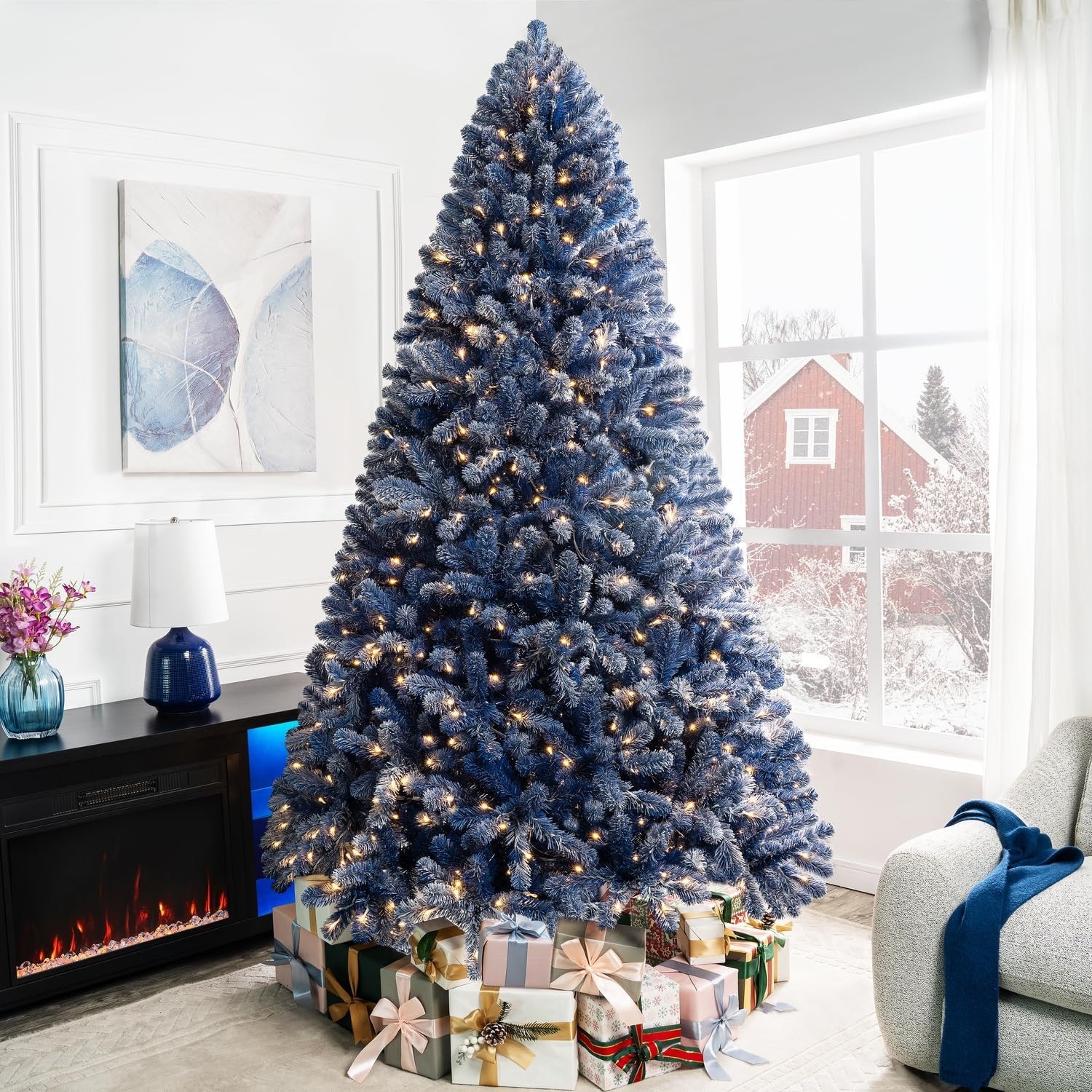 Frosted PVC Pre-Lit Christmas Tree with Warm LED Lights, Realistic Branch Tips, and Sturdy Metal Stand -Cozy Holiday Experience