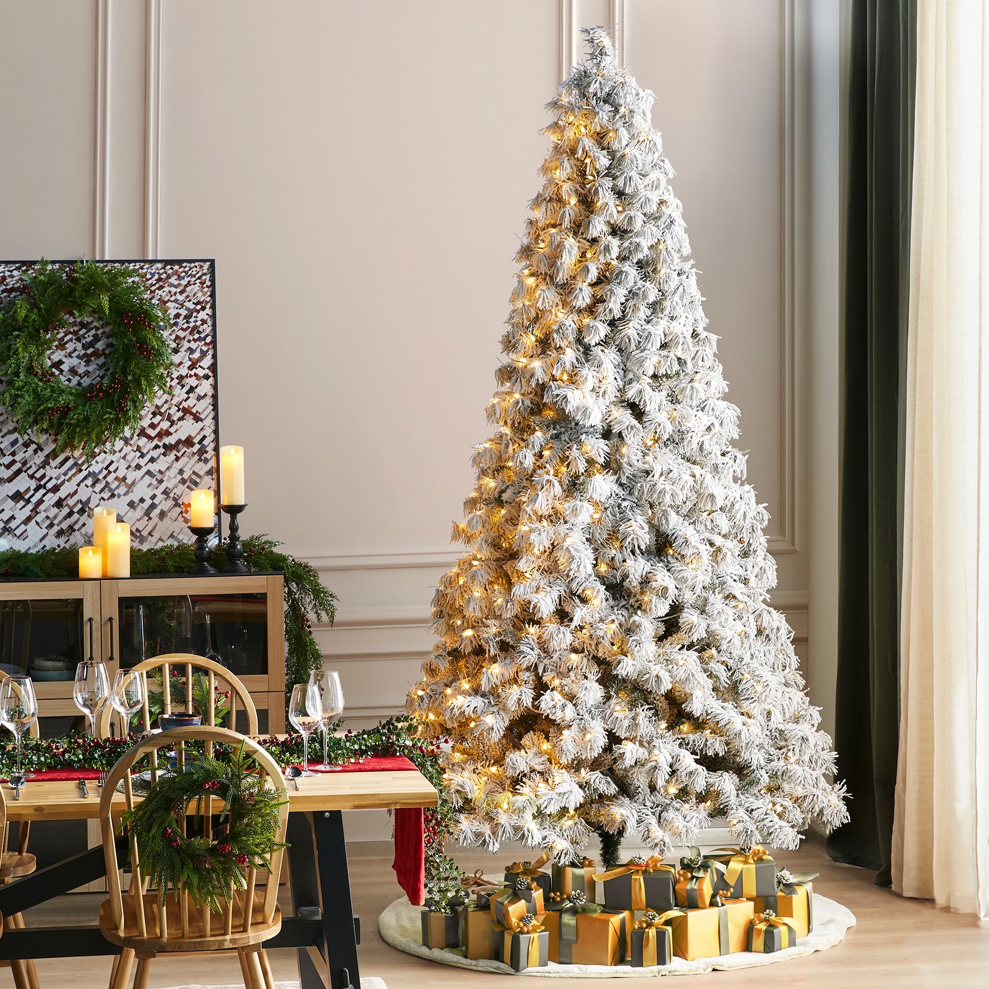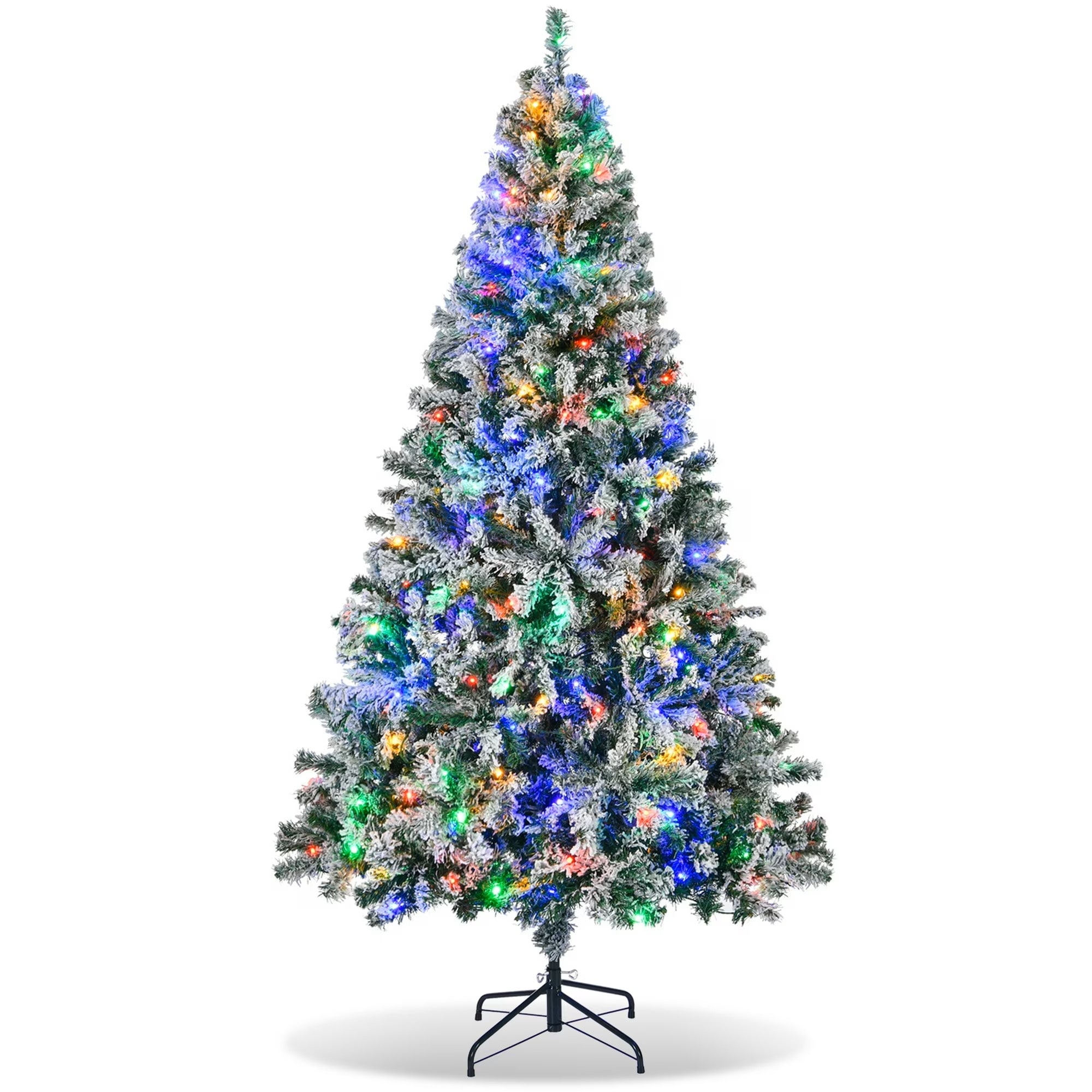Glitzhome 7.5ft/9ft Pre-Lit Flocked Full Spruce Artificial Christmas Tree with C3 Lights Foot Switch