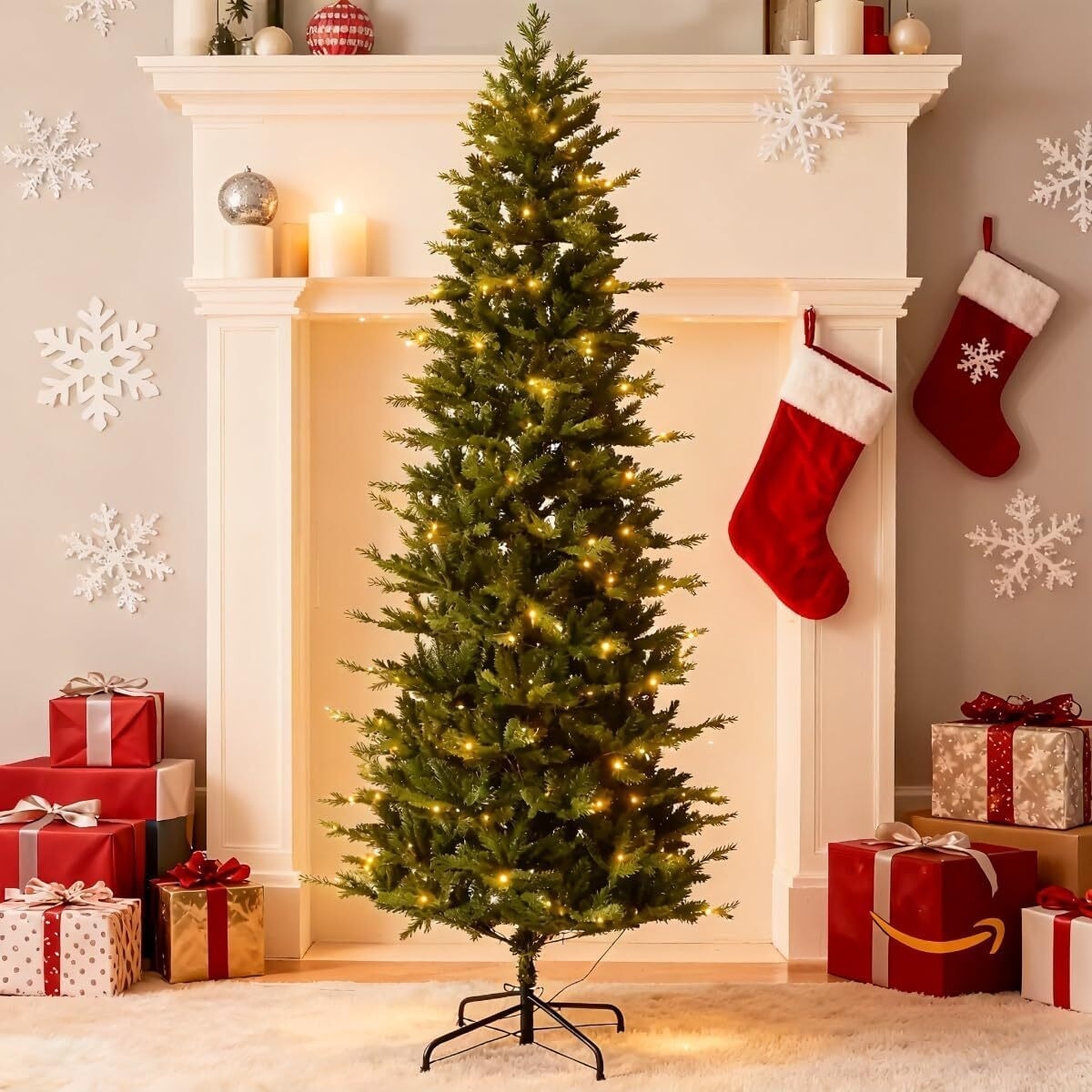 7.5Ft Pre-Lit Slim Christmas Pencil Xmas Tree, - 7.5 ft