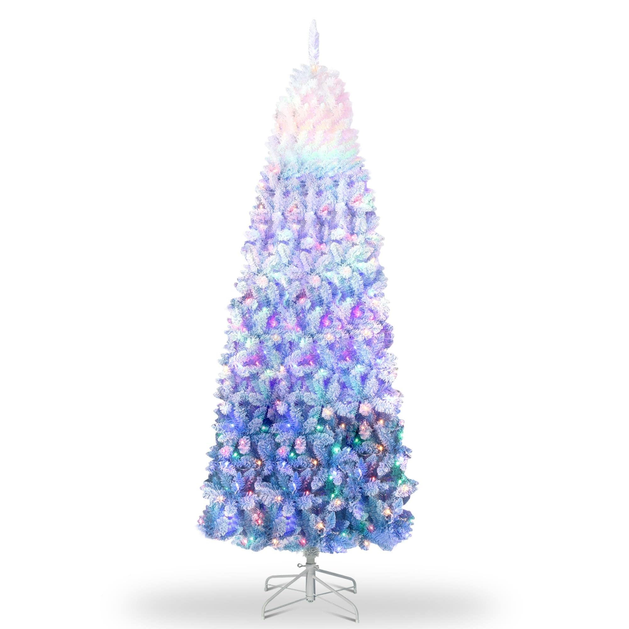 4.5/6/7.5/9Ft Snow Flocked Pencil Christmas Tree, Slim Color Gradient Xmas Tree with Metal Stand, Holiday Decor