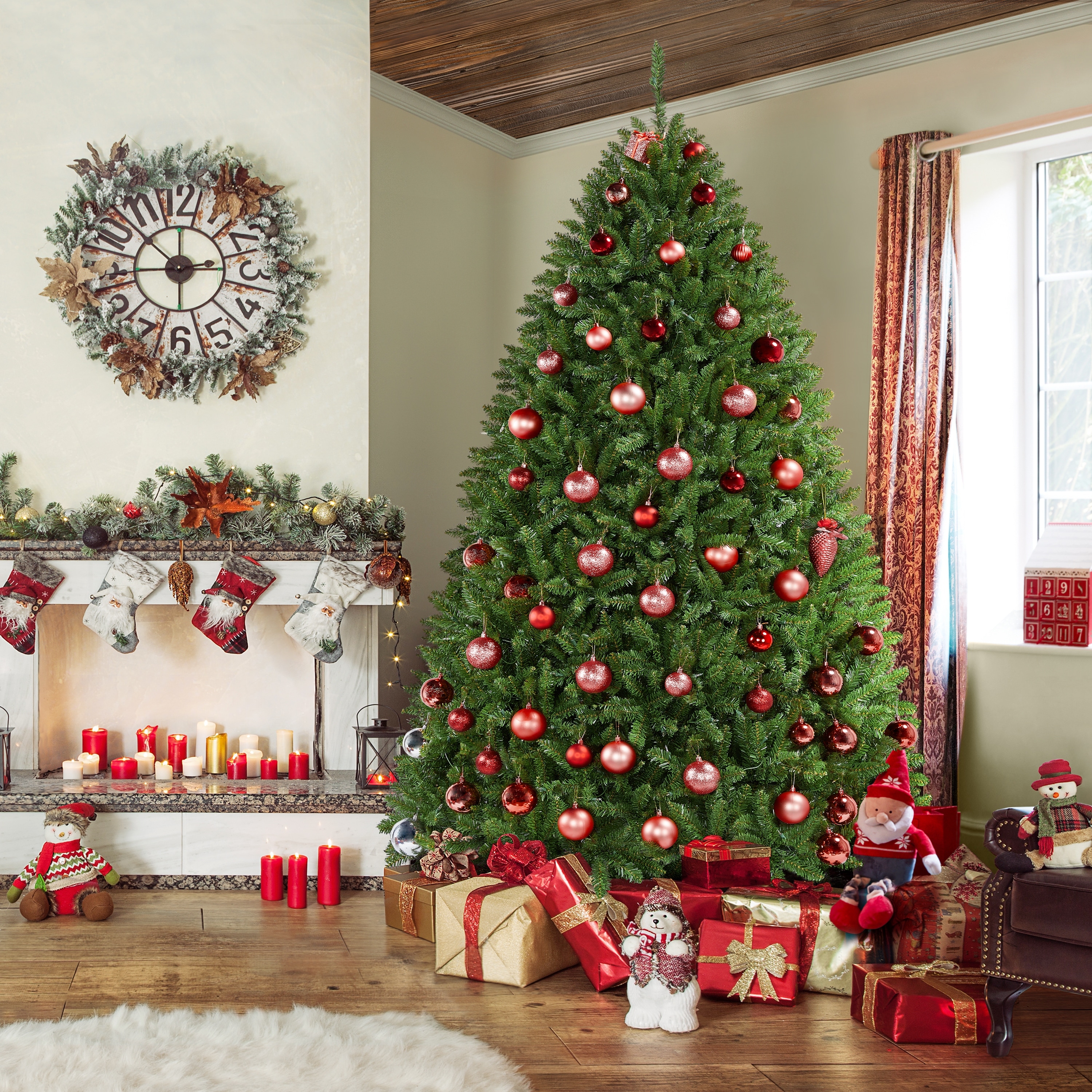 Cynthia Prelit Artificial Christmas Tree, Realistic Rustic Christmas Tree with Lights