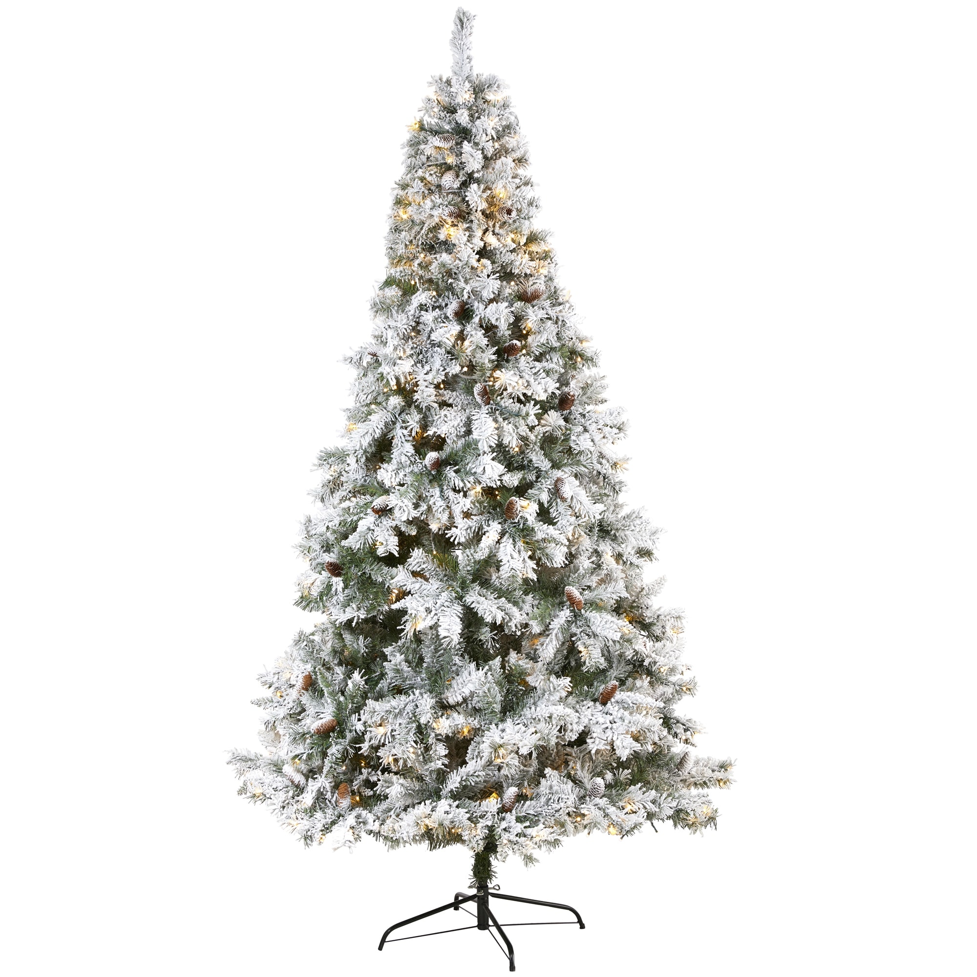 8' Pre-Lit Flocked River Mountain Pine Artificial Christmas Tree, Warm Clear LED Lights - 8 Foot