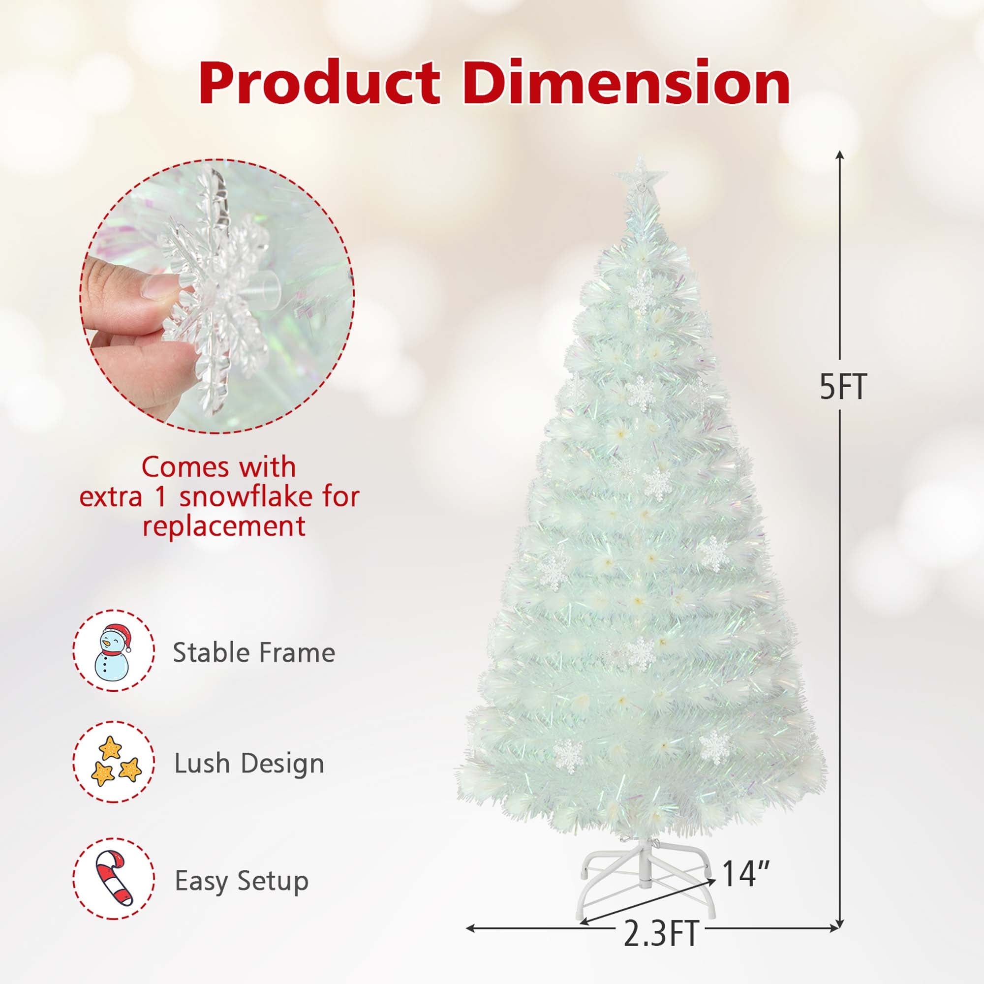 5/6/7FT Pre-Lit Fiber Optic Christmas Tree Decor Multi-Color Snowflake