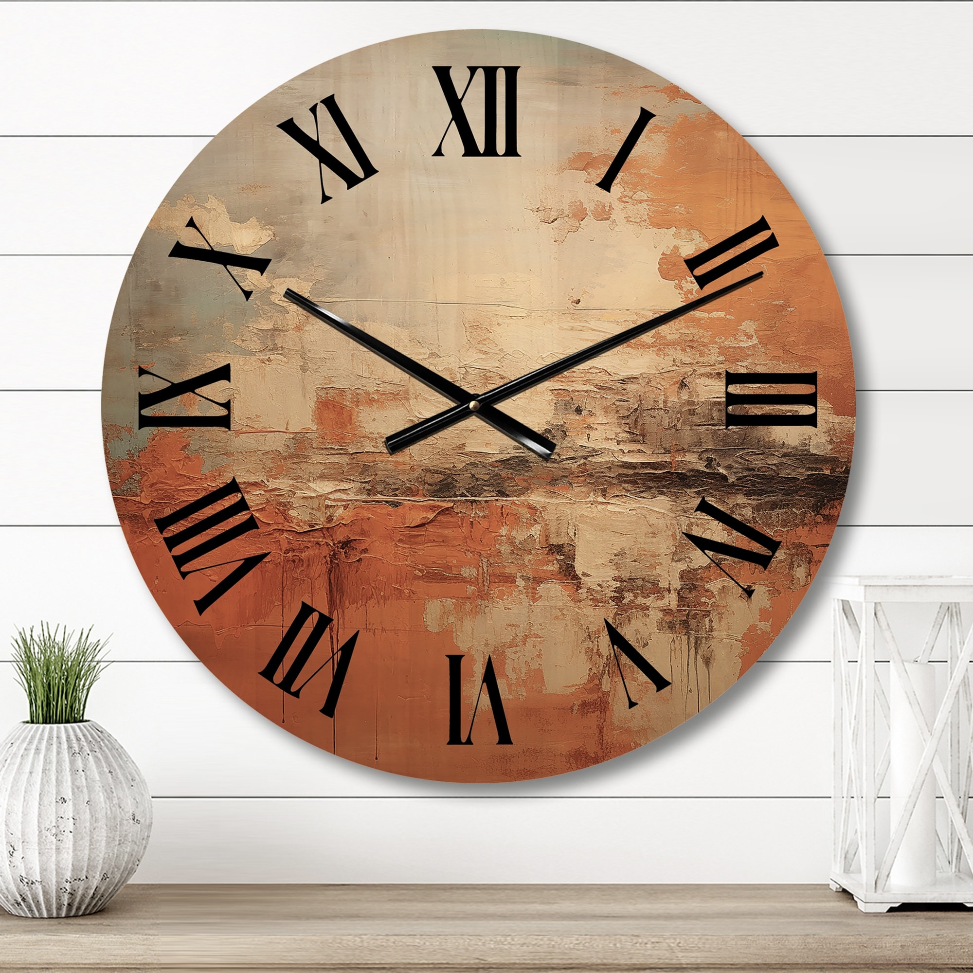 Designart "Copper Glow" Abstract Landscape Oversized Wood Wall Clock