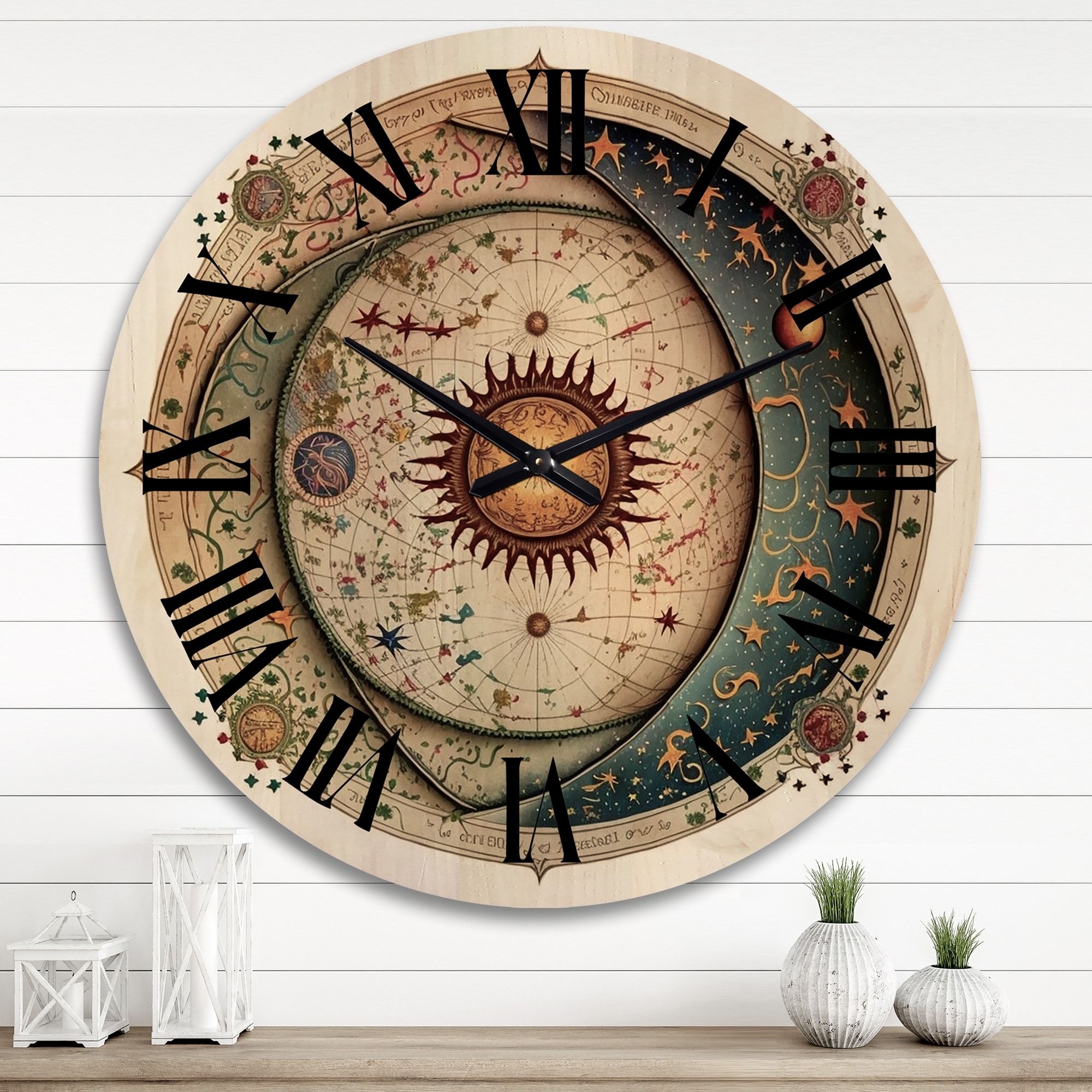 Designart "Ancient Map Of Galaxy" Modern Geometric Oversized Wood Wall Clock