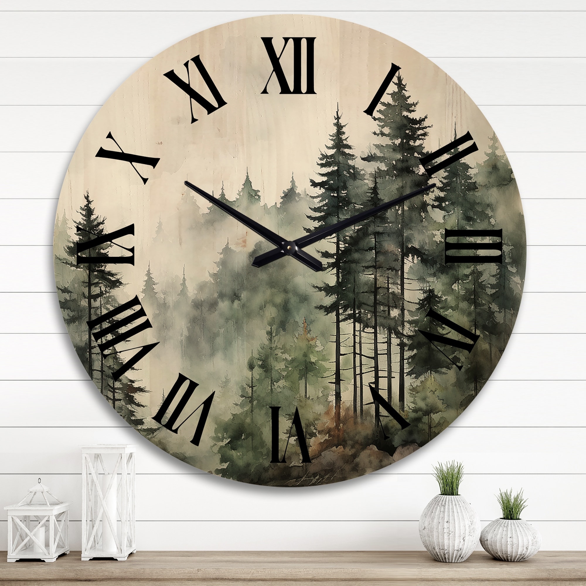 Designart "Pine Tree Misty Morning I" Landscapes Oversized Wood Wall Clock