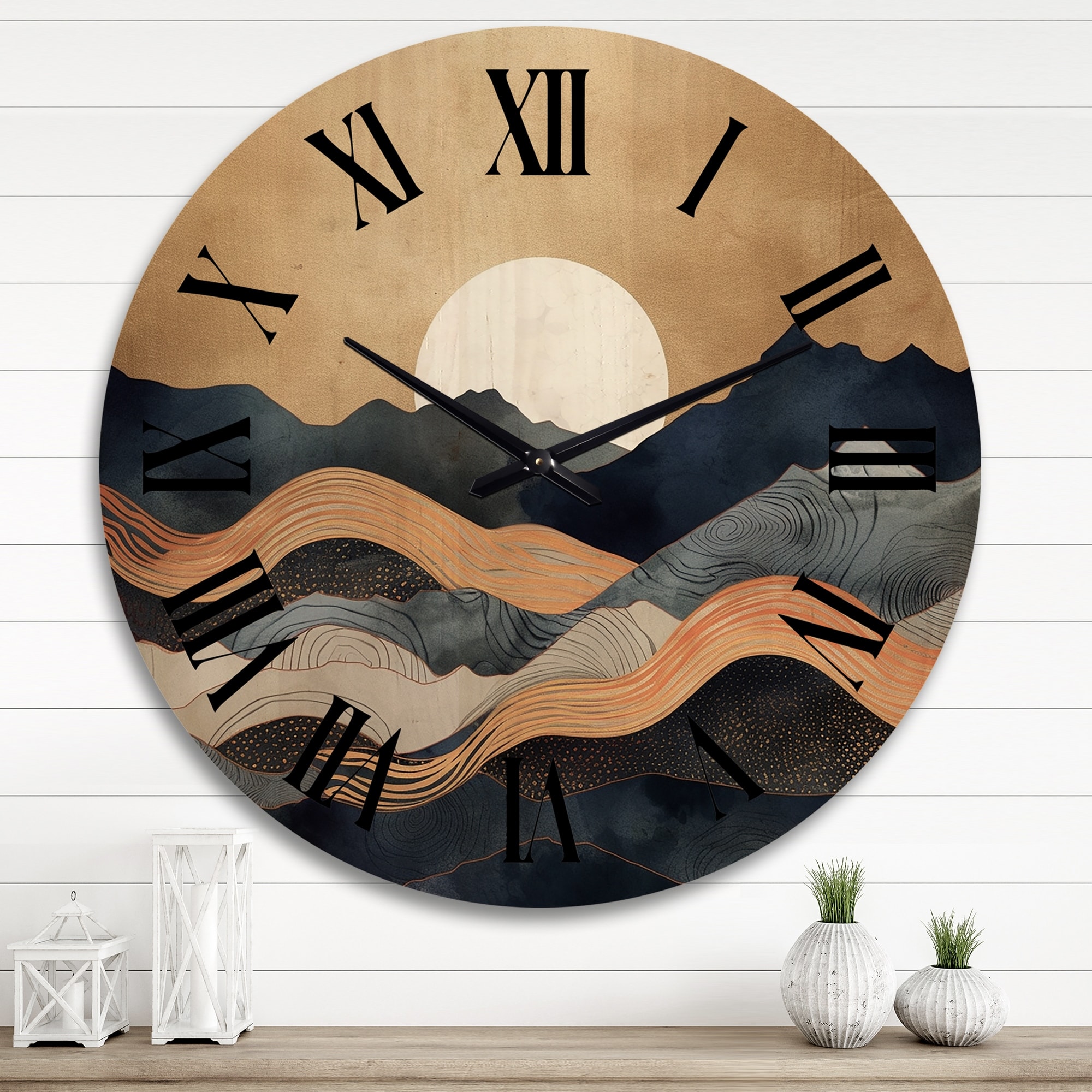 Designart "Abstract Mountains" Abstract Landscape Oversized Wood Wall Clock