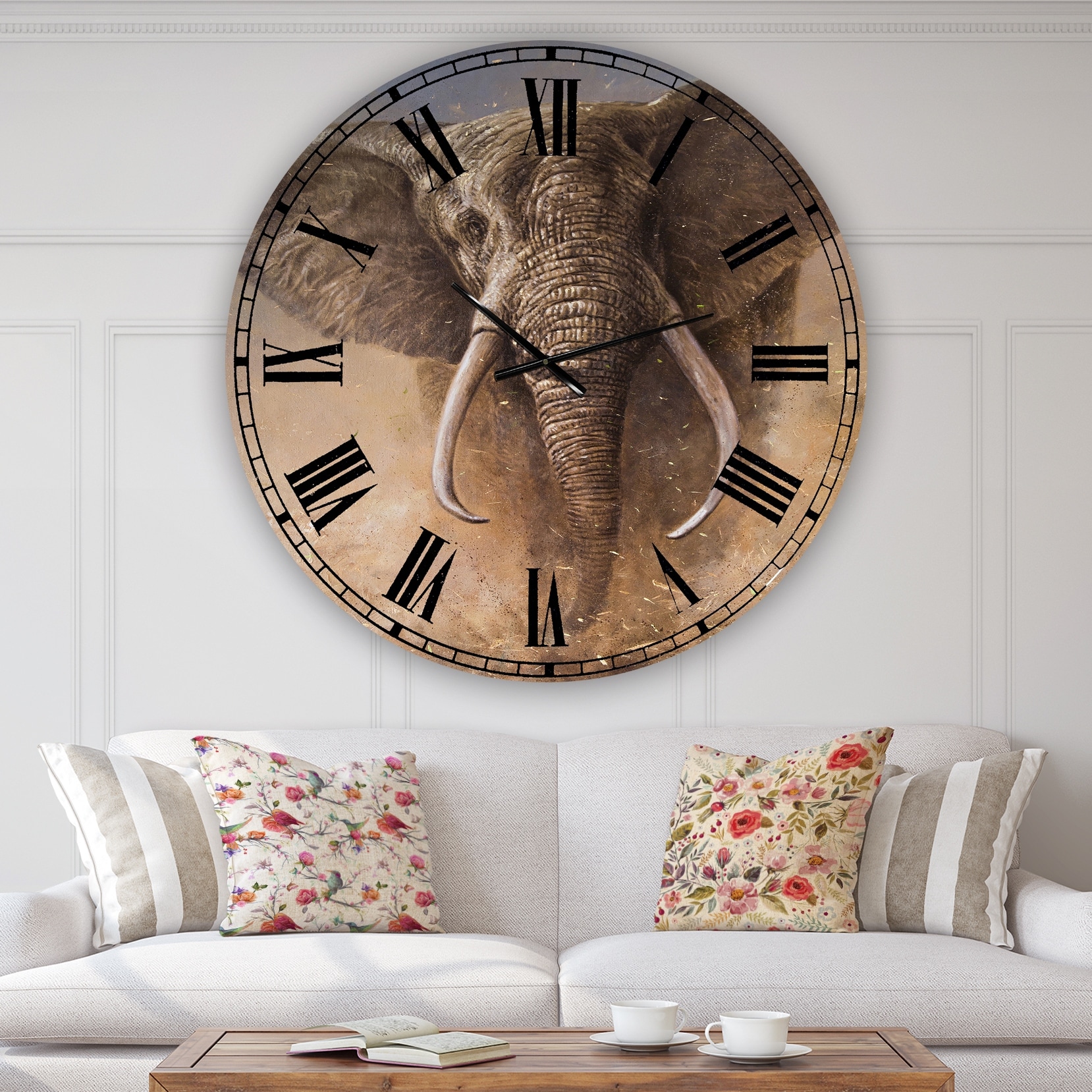 Designart 'Africa's Wild Elephant in Dust' Cottage Wall Clock