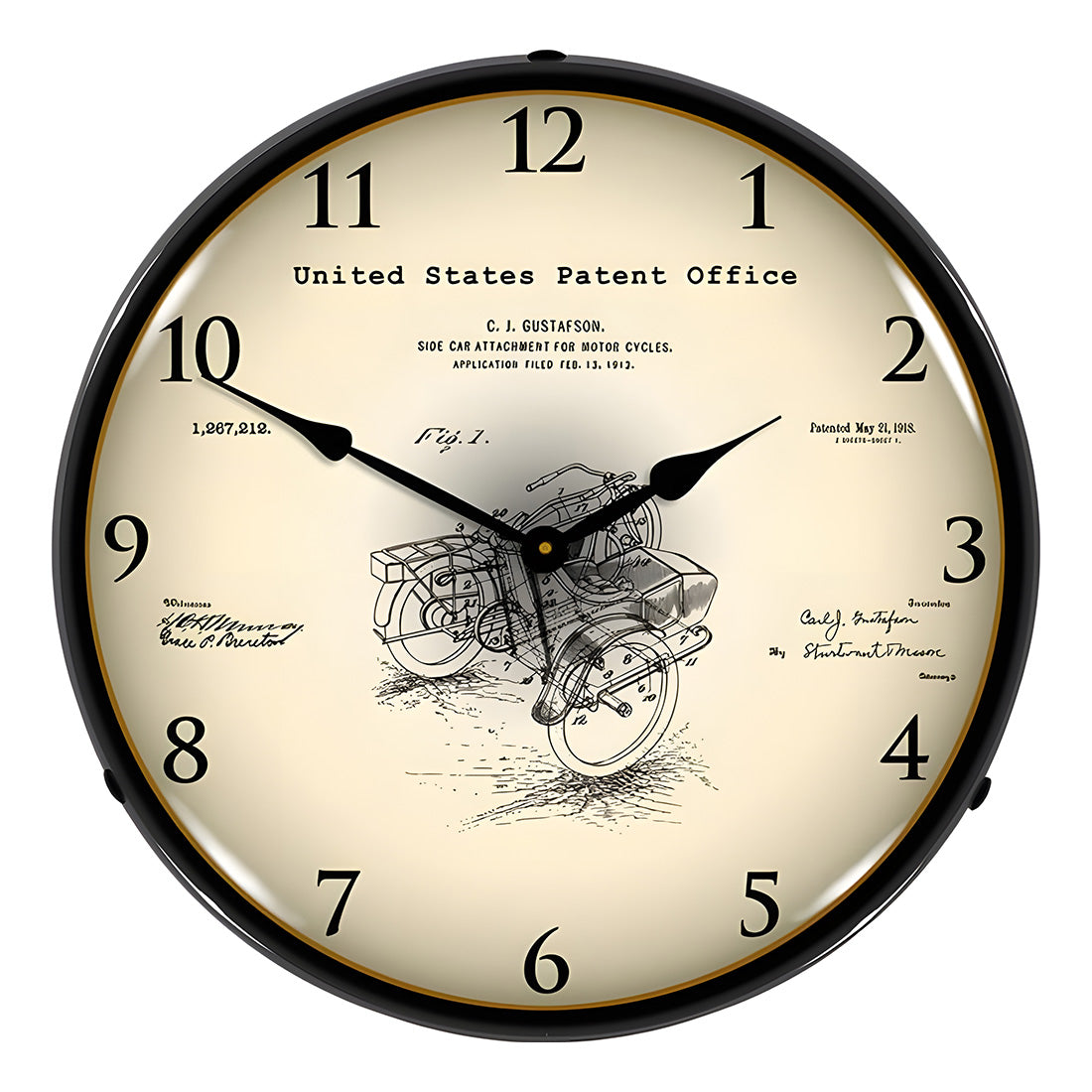 Collectable Sign and Clock 1913 Motorcycle Side Car Patent Blueprint Backlit Wall Clock