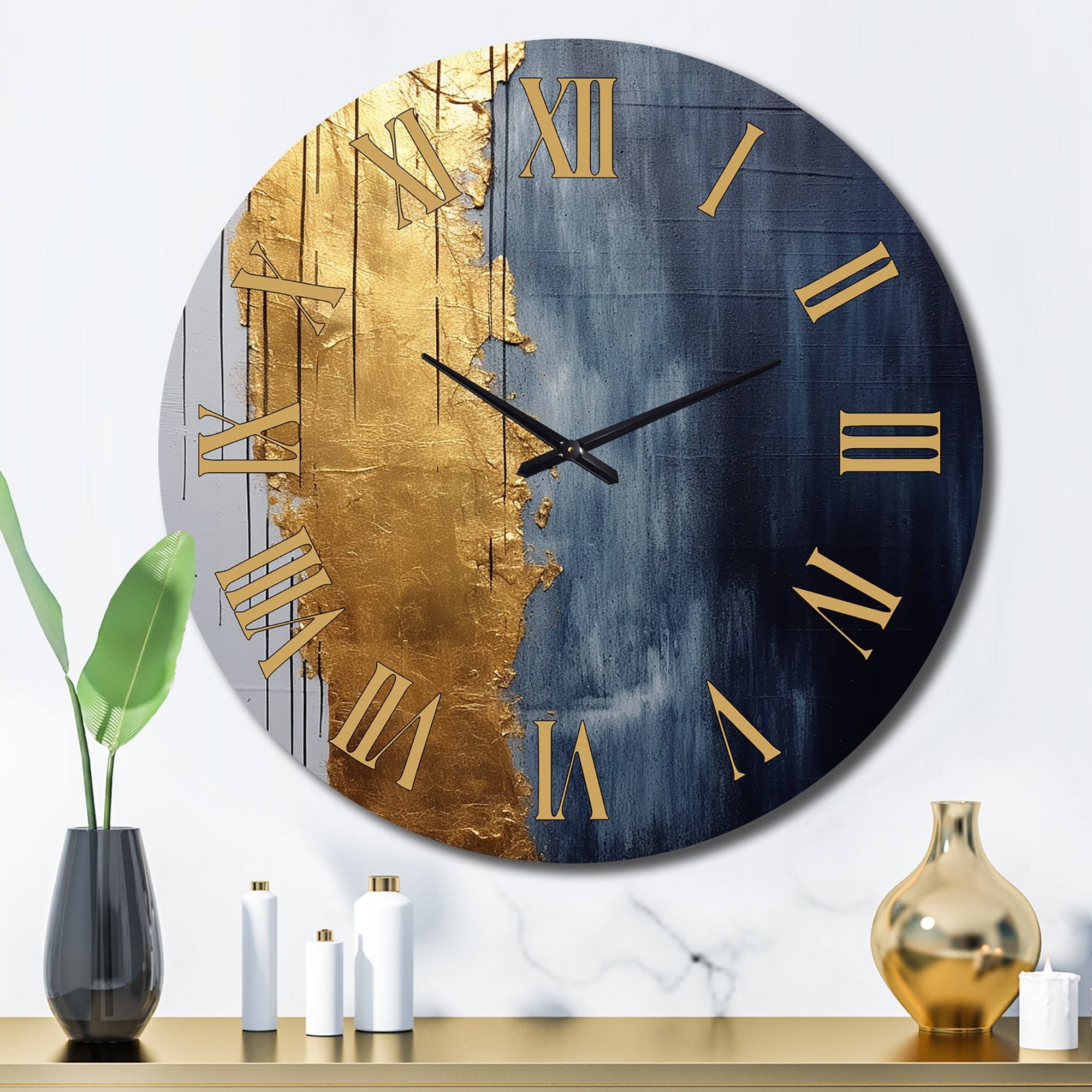 Designart "A Touch Of Gold And Kings Blue III" Abstract Painting Oversized Wall Clock