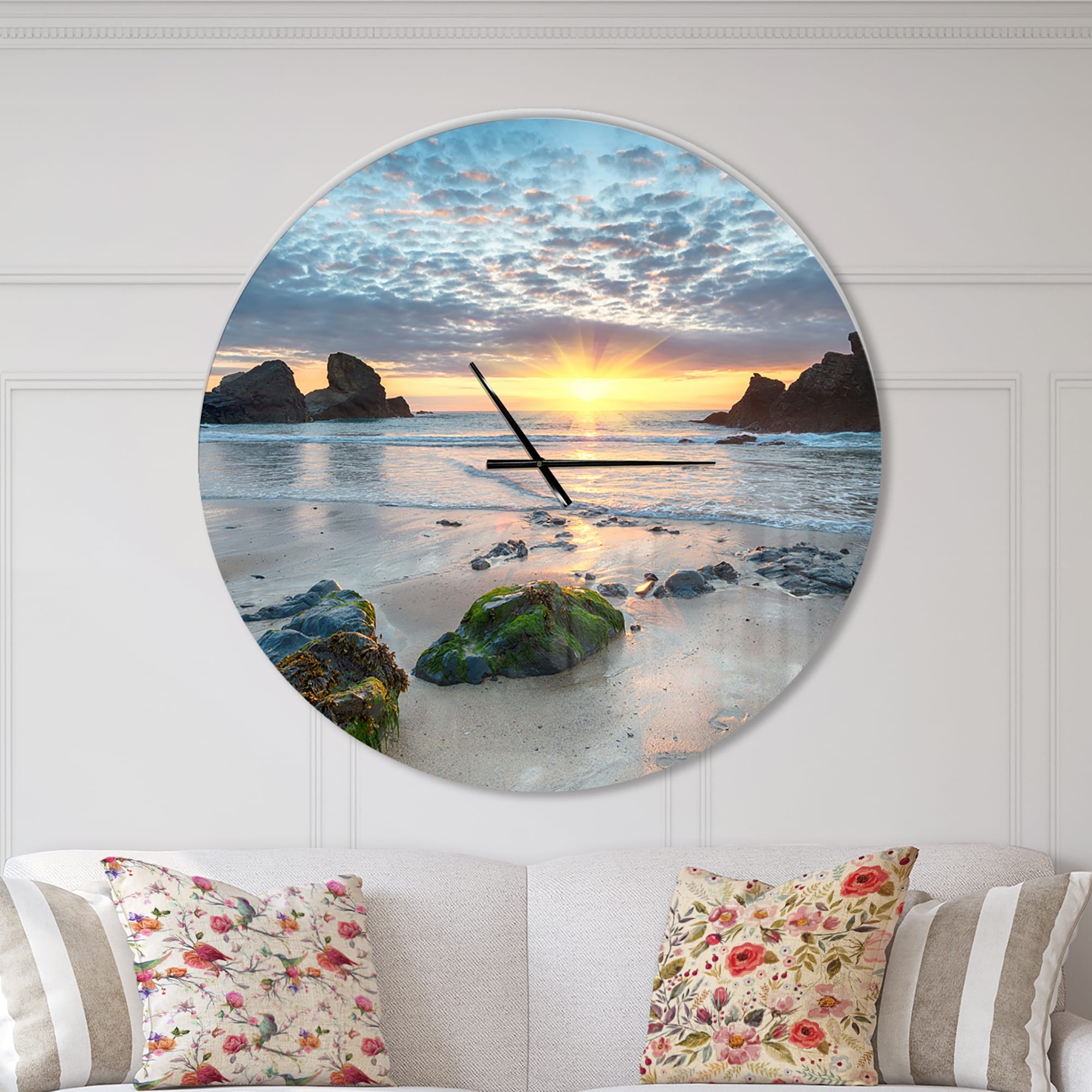 Designart 'Beautiful Porthcothan Bay' Oversized Coastal Wall CLock