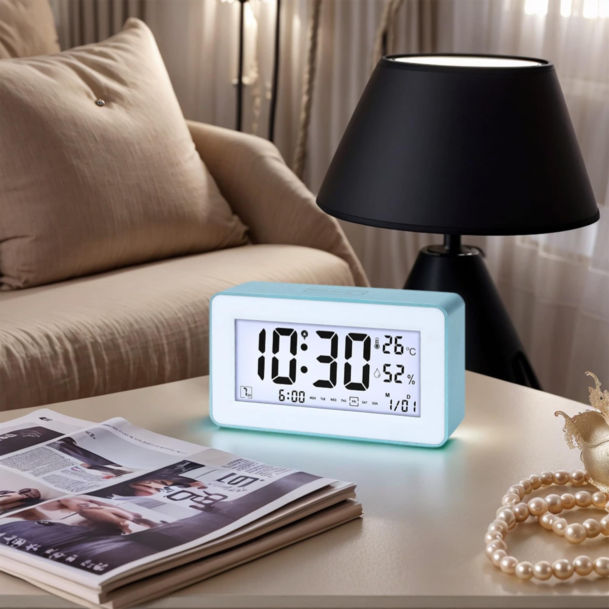 Digital Alarm Clock Large LED Display, Dual Alarms, Wired Shaker for Bedroom/Dorm - 4.3"L x 2.4"W x 4.3"H
