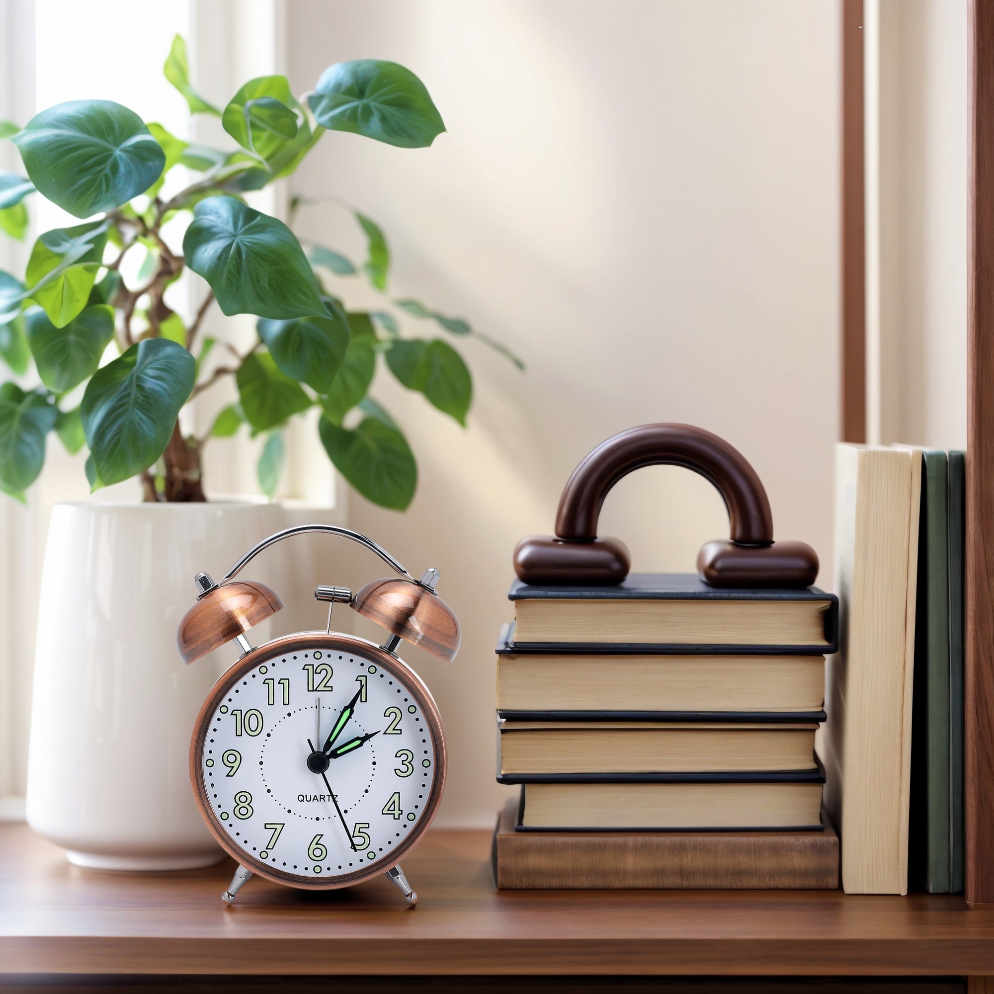 Vintage Mechanical Alarm Clock, Metal Casing, Nightlight for Bedroom Nightstand - 3.3"L x 1.9"W x 4.9"H