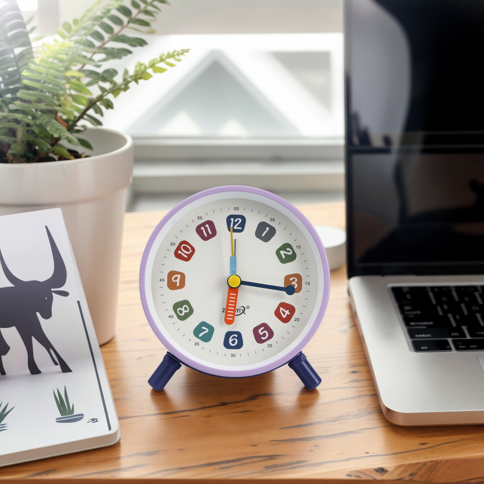 Mechanical Alarm Clock, Colorful Square Numbers Design, Durable Metal Material for Living Room - 3.7"L x 1.7"W x 4.1"H