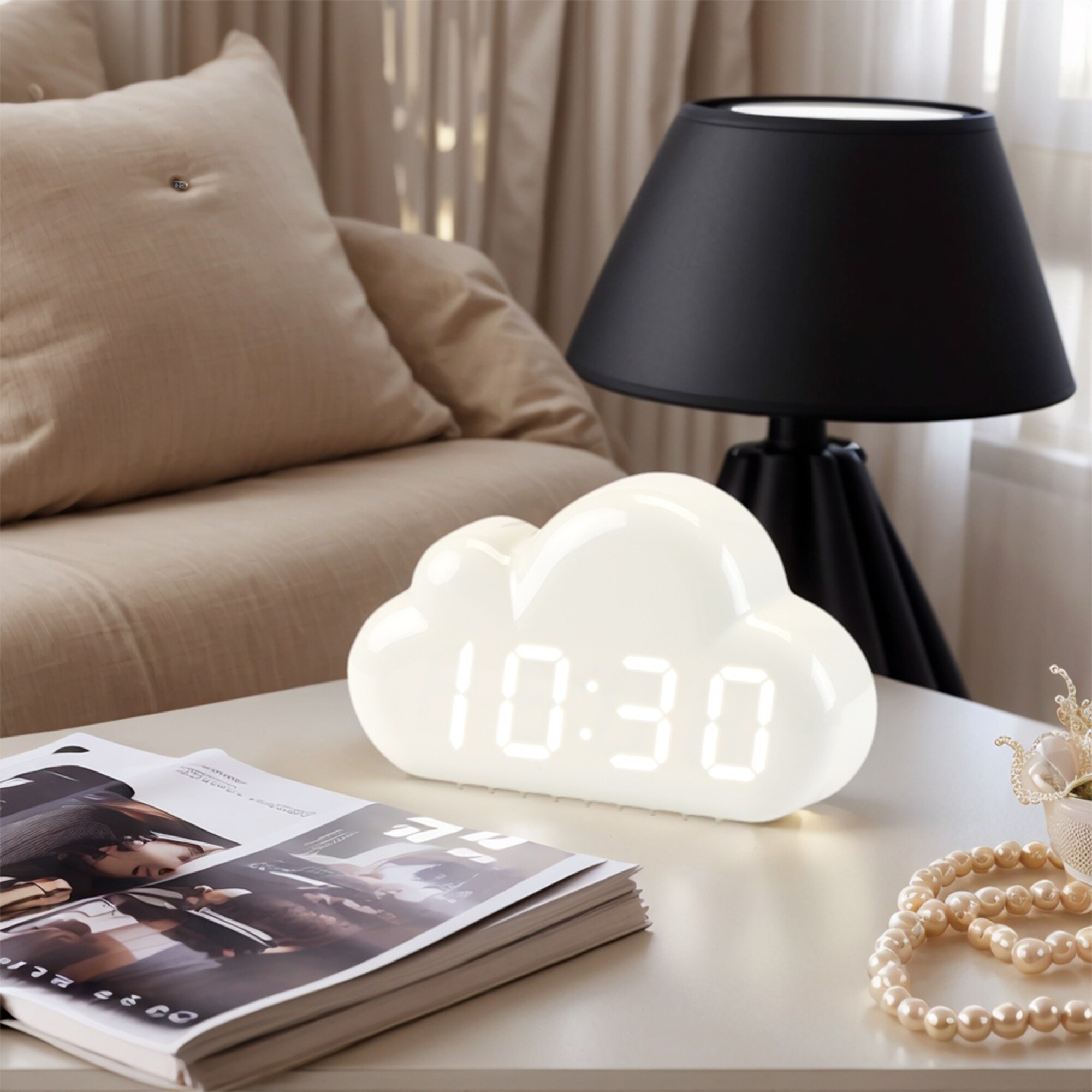 Cloud Design Alarm Clock, Three Alarms, Adjustable Brightness for Bedroom/Dorm - 5.9"L x 1.6"W x 3.5"H