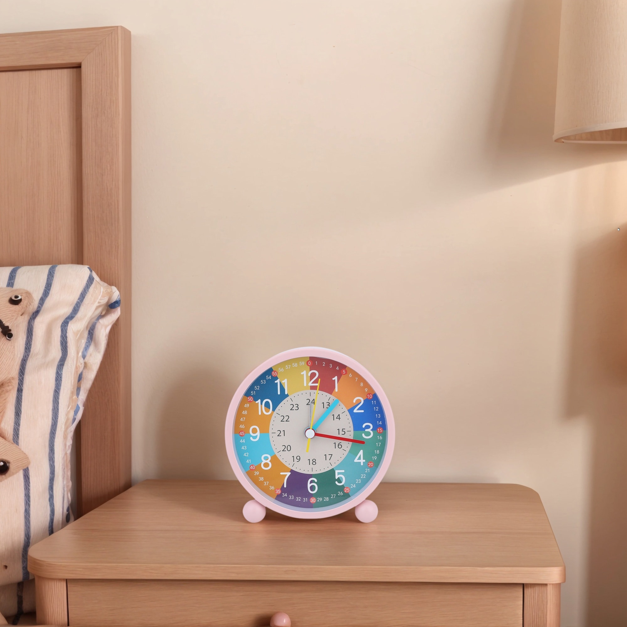 Mechanical Alarm Clock Colorful Cartoon Design, No Tick Sound, Battery Operated for Home Decor - 4.5"L x 2.0"W x 4.7"H