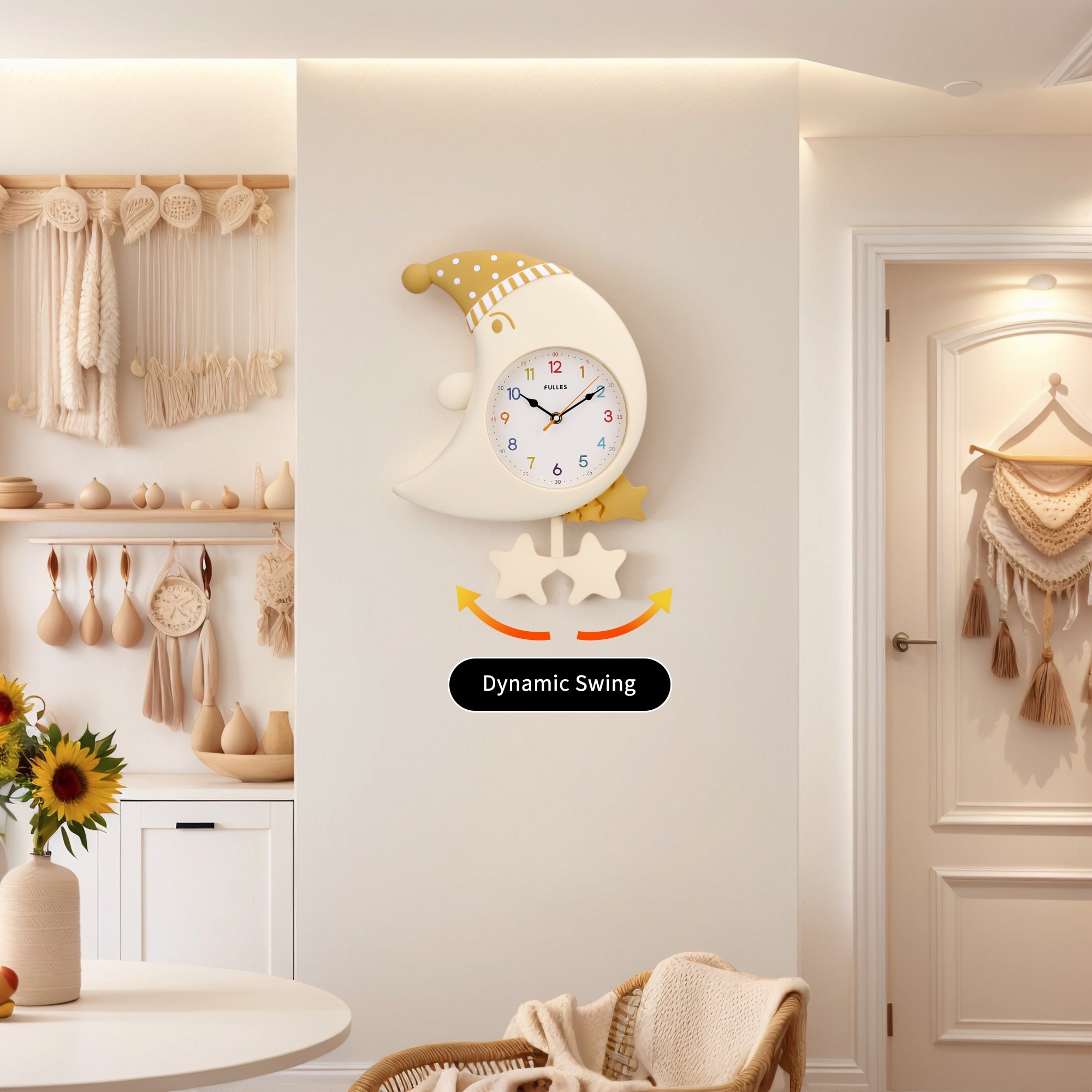 Cute Cartoon Moon Wall Clock with Star Decor, Silent Non-Ticking for Office Bedroom Living Room - 18 x 12 x 2.4 inch