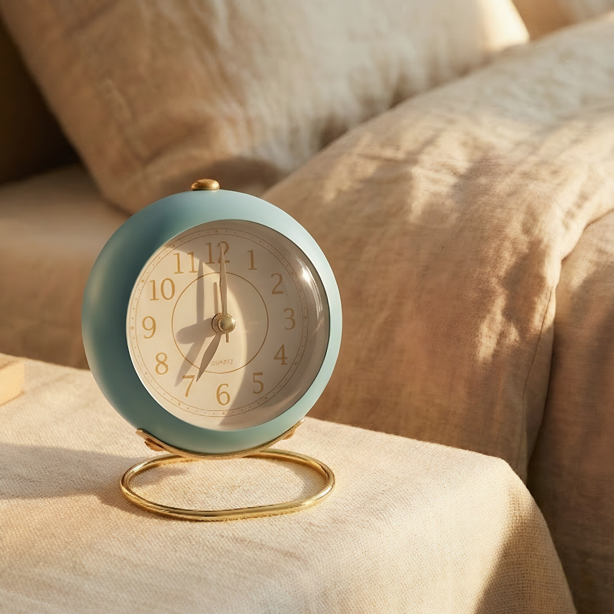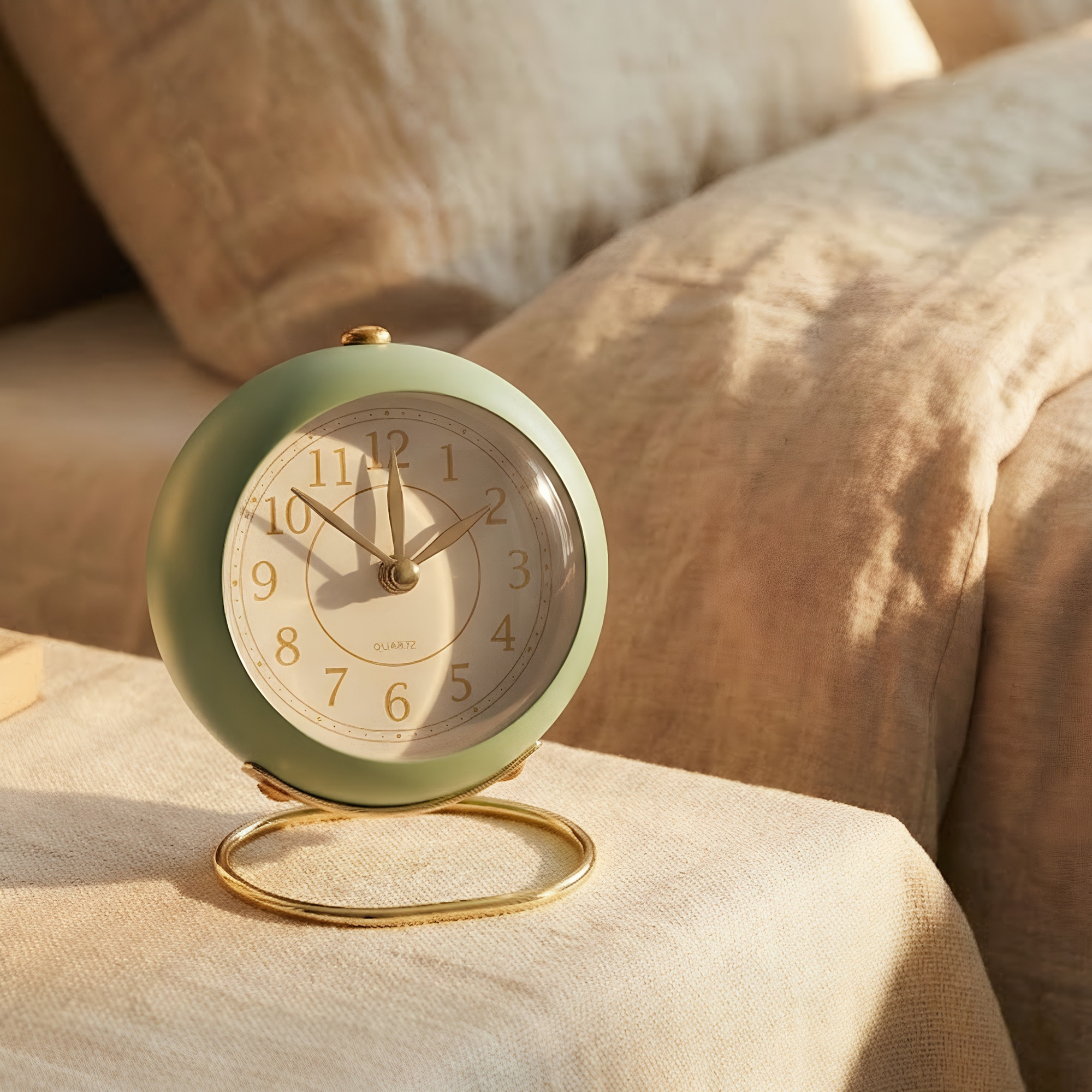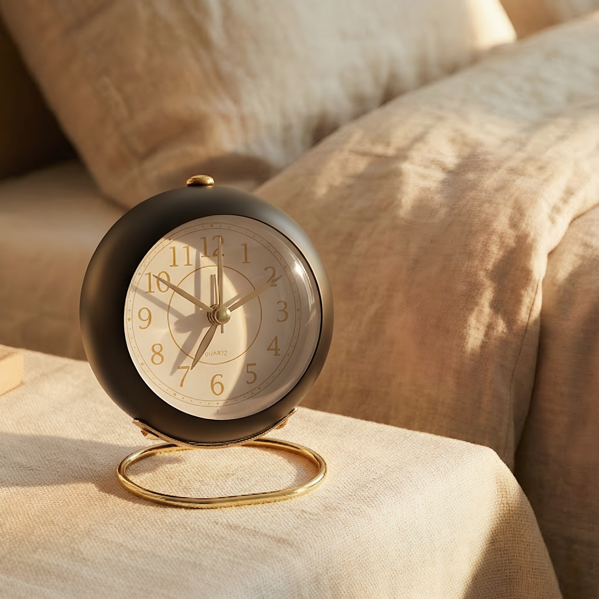 Planet Design Desk Alarm Clock Minimalist Metal Frame, Non-Tick, Perfect for Study/Office - 4.1"L x 2.5"W x 3.5"H