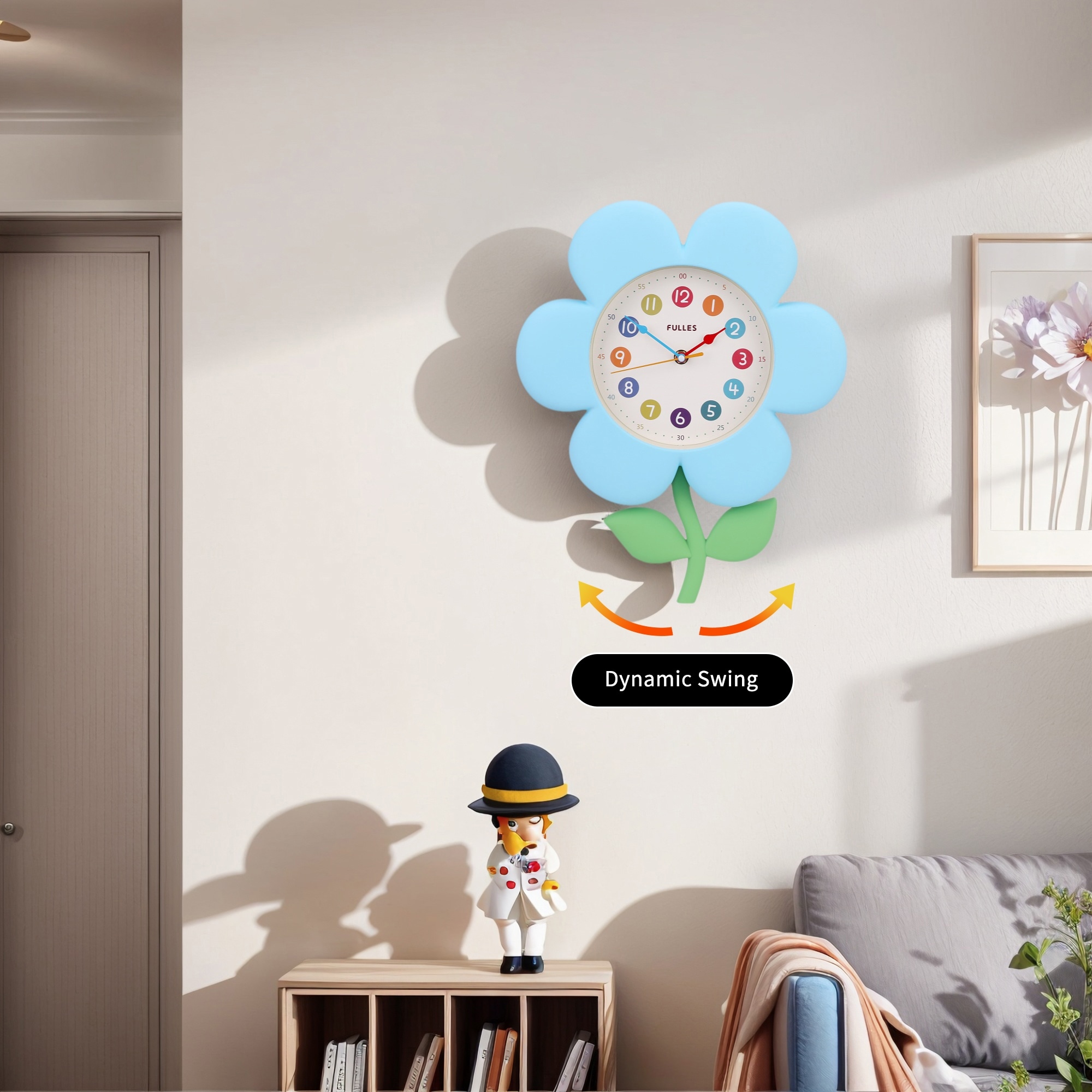 Flower Design Wall Clock, Silent Non-Ticking, Colorful Numbers for Office Bedroom School Living Room - 15 x 12 x 2.8 inch
