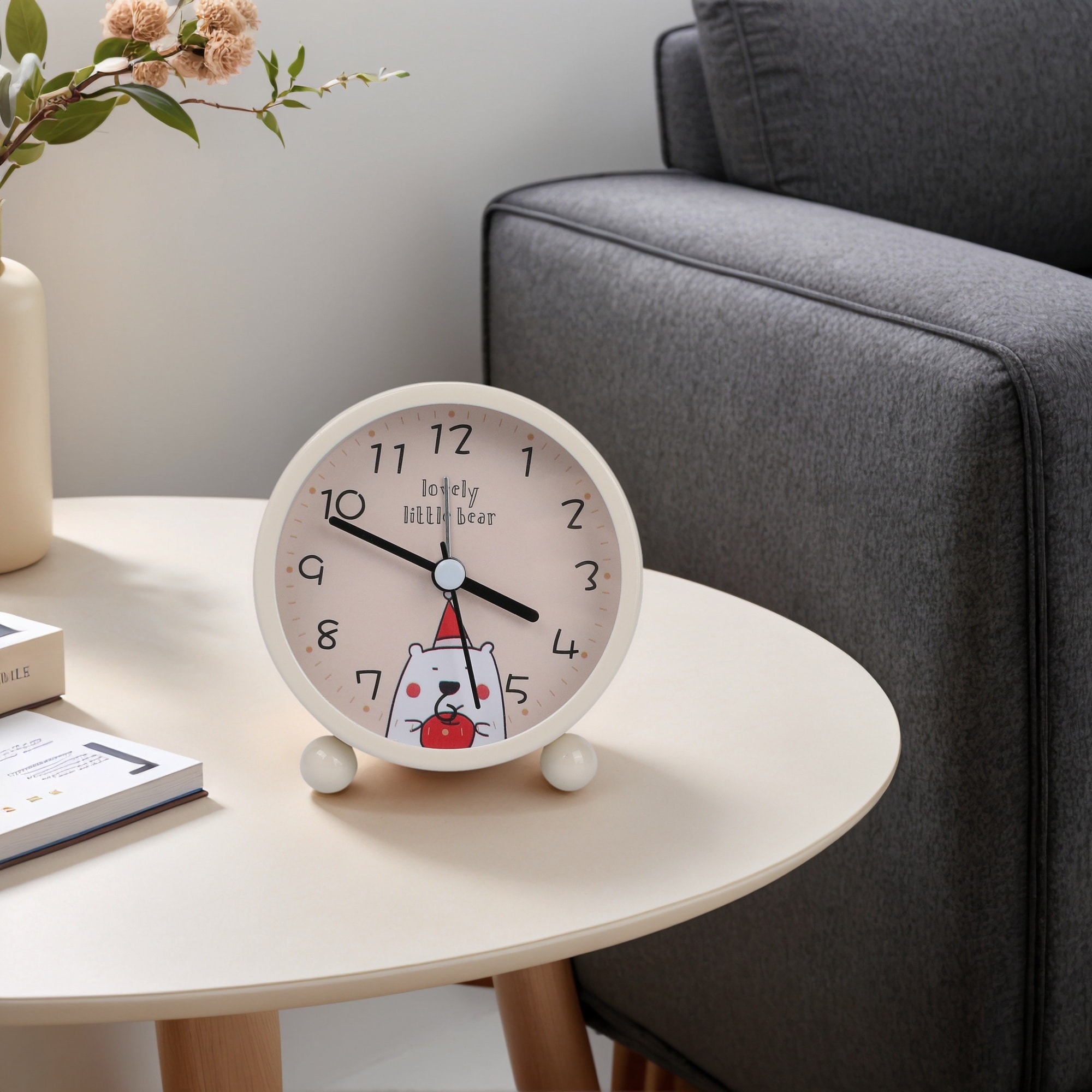Cute Alarm Clock, Non-Tick Movement, with Spherical Base, Lovely Animal Patterns for Teens - 3.1"L x 1.9"W x 3.3"H