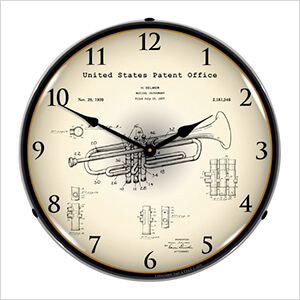 Collectable Sign and Clock 1937 Trumpet Patent Blueprint Backlit Wall Clock