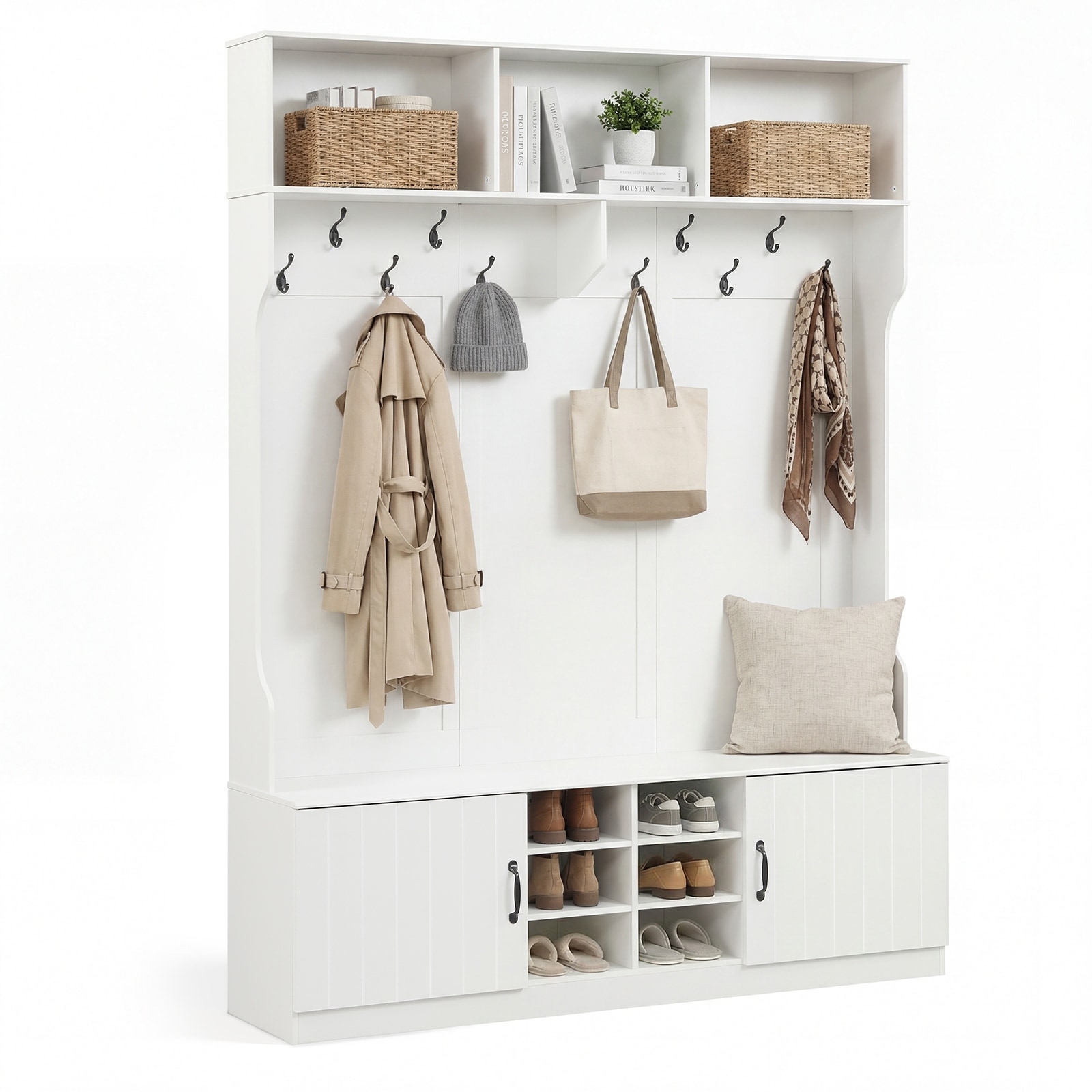 Costway 3-in-1/6-in-1 Hall Tree wirh Bench Storage Adjustable Shelves