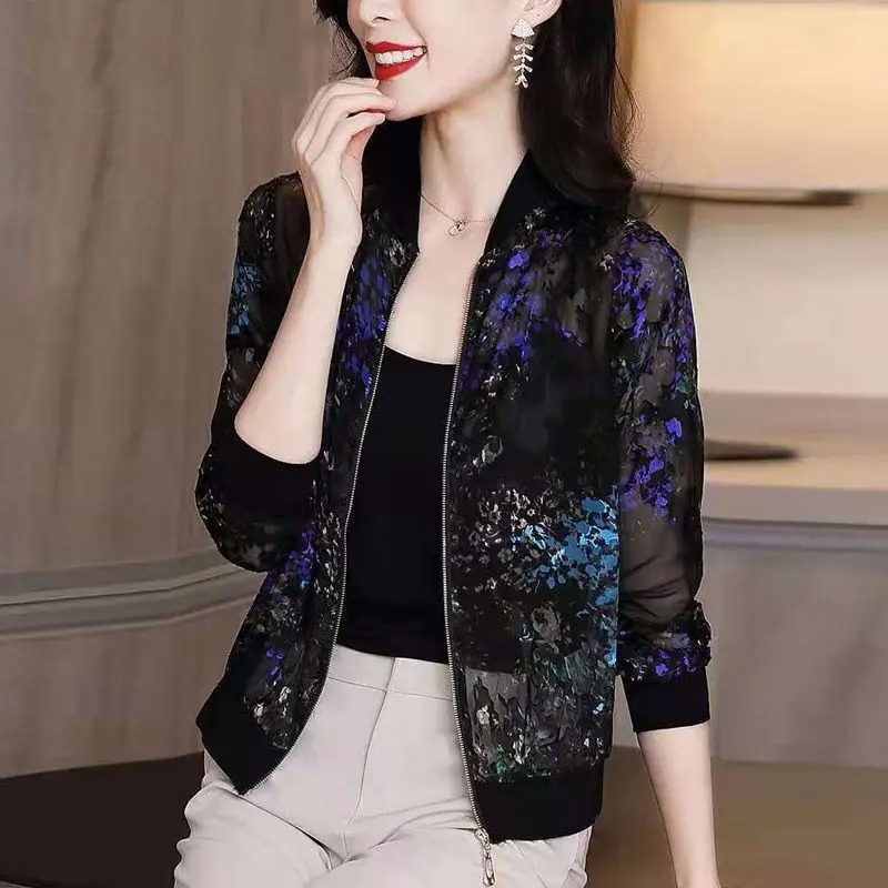 Jacket Women Short Floral Coat Female Zipper Slim Thin Perspective Sunscreen Womens And Coats Hollow Jacket Women Short Floral Coat Female Zipper Slim Thin Perspective Sunscreen Womens And Coats Hollow 3064 4XL
