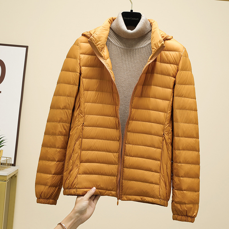 New Women Ultralight Down Jacket, Removable Hood, White Duck Down, Thin Winter Outwear, Portable Storage orange xxxl