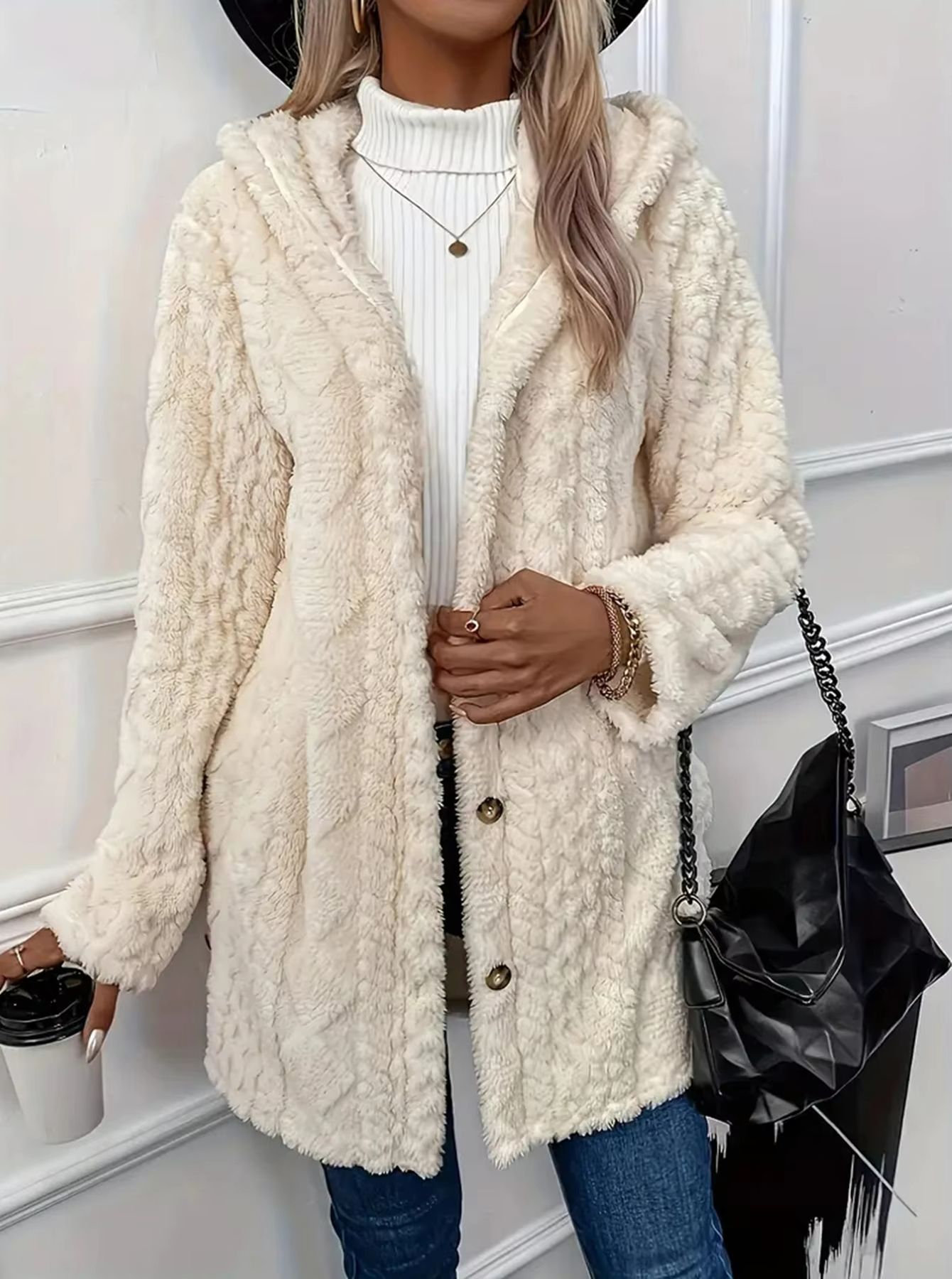CozyChic Women's Plush Winter Jacket Thickened Solid Color Button Casual Coat s(us 4)