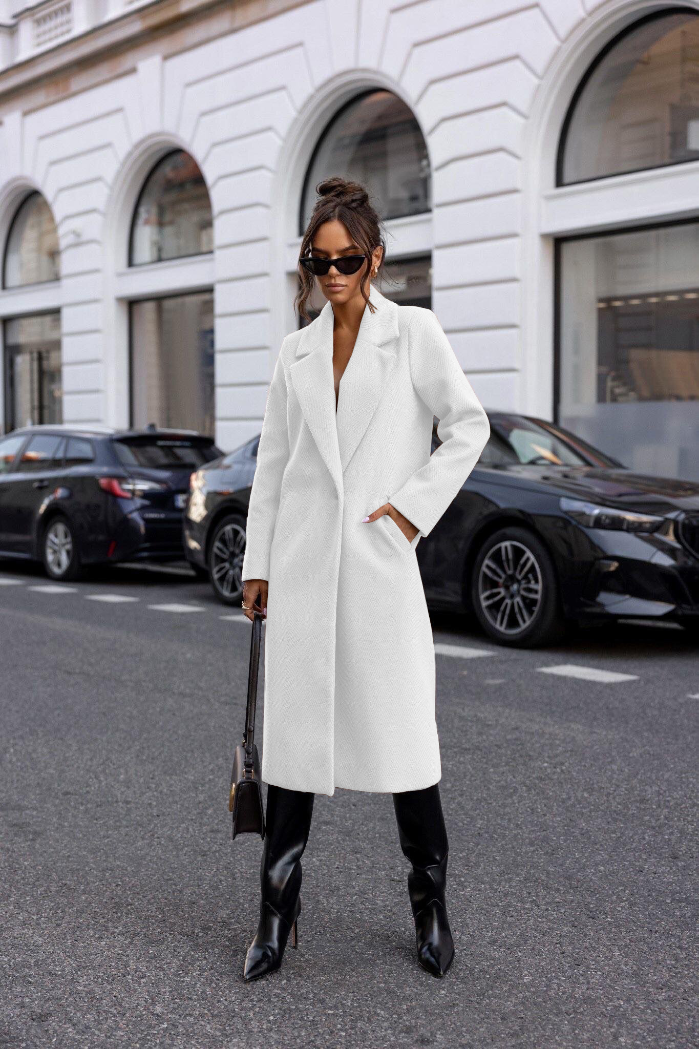 New Spring Winter Warm Long Woolen Coat Women Elegant Warm Wool Blend Trench Coat With Belt Fashion Outerwear white m