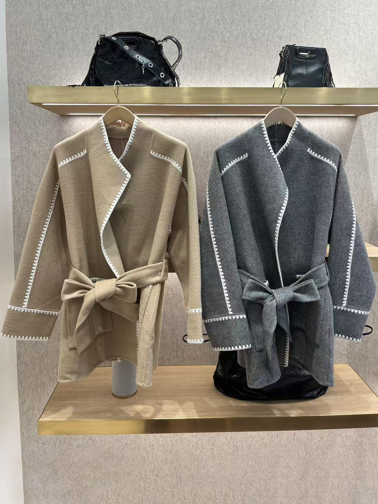 Womens French Style Wool Blend Coat, Belted Long Cardigan, Autumn Winter Outerwear, Loose Fit Trench m camel