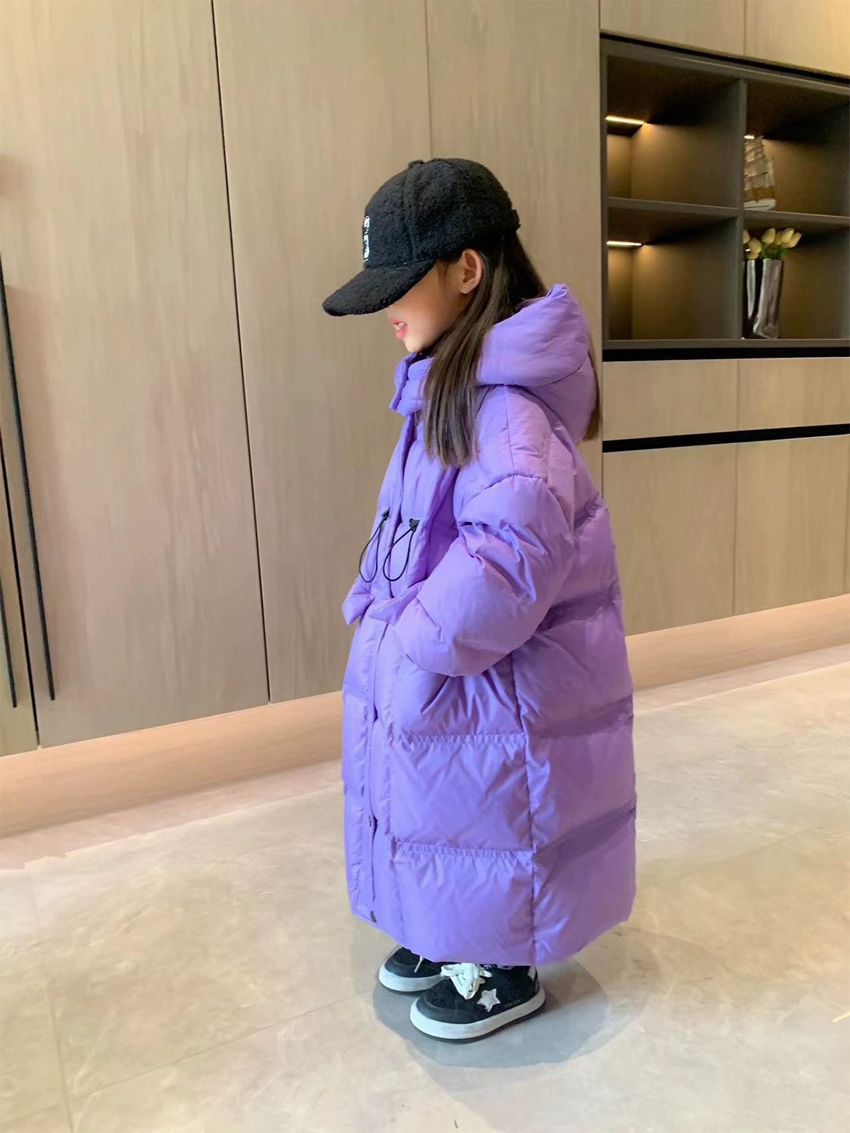 Kids Waterproof Heat Parka, Winter Clothing For Girls, Overknee Length Down Jacket With Hood black 120