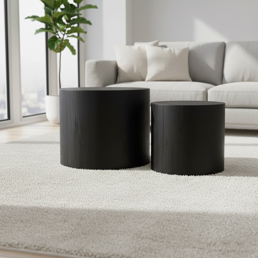 Wood Nesting Coffee Table Set - Round Solid Wood Accent Tables for Living Room (2-Piece)
