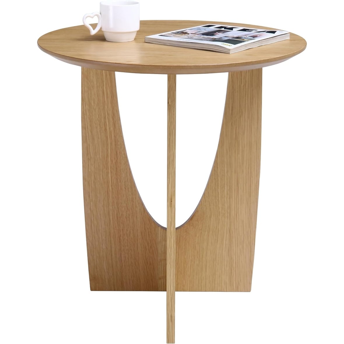 Round End Table, Small Modern Wood Coffee Table for Living Room or Bedroom