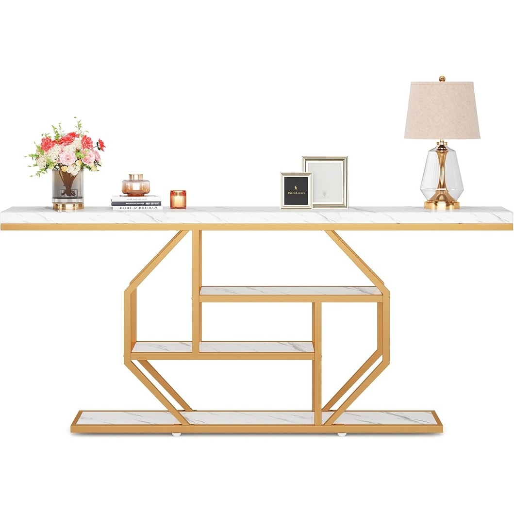 Extra Long 70.9" Console Table with 4-Tier Open Shelves for Living Room, Hallway