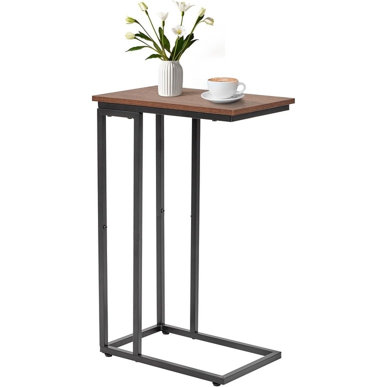 C-Shaped End Table, for Living Room, Bedroom, Small Spaces, TV Tray Couch Side Tables Laptop Table, Rustic Brown and Black