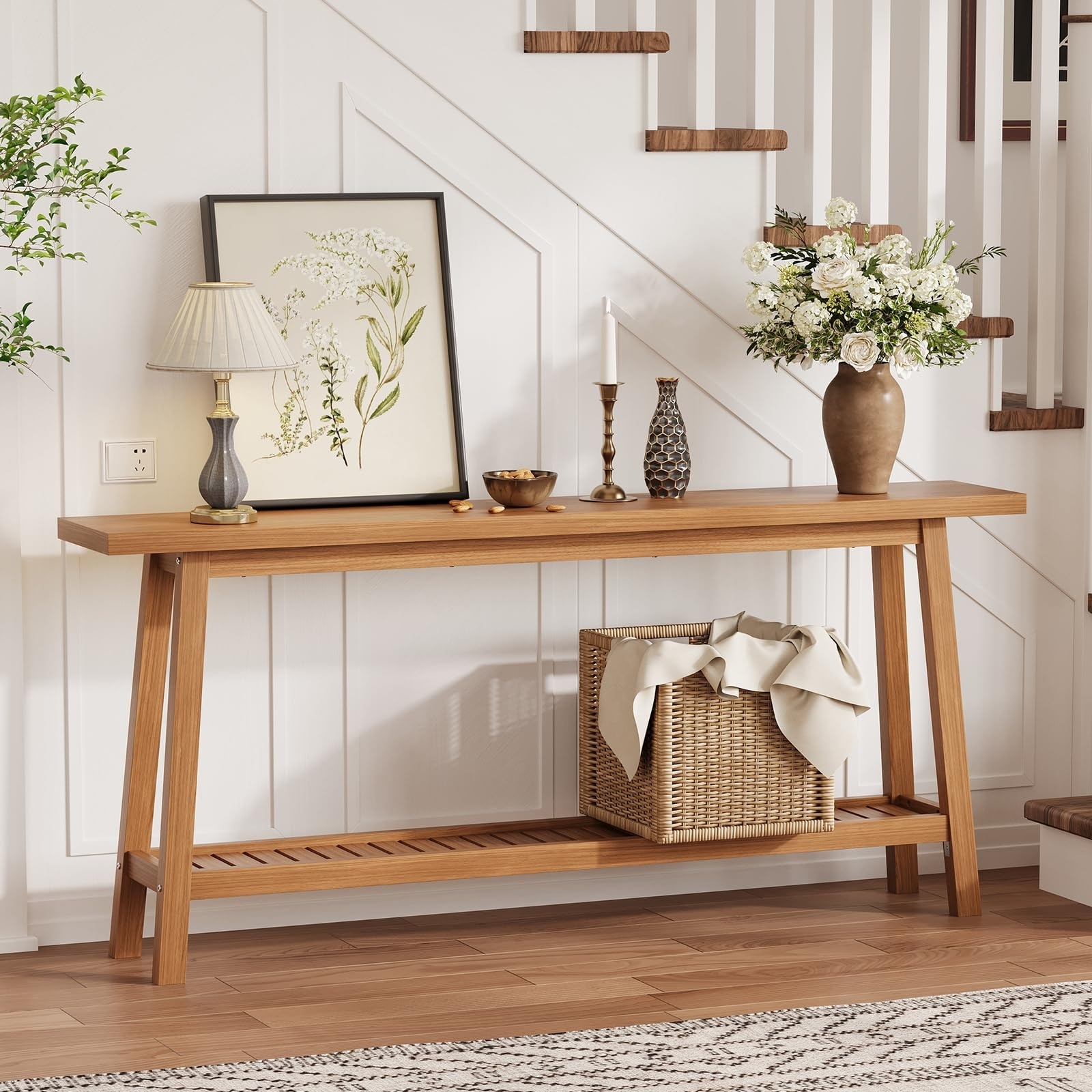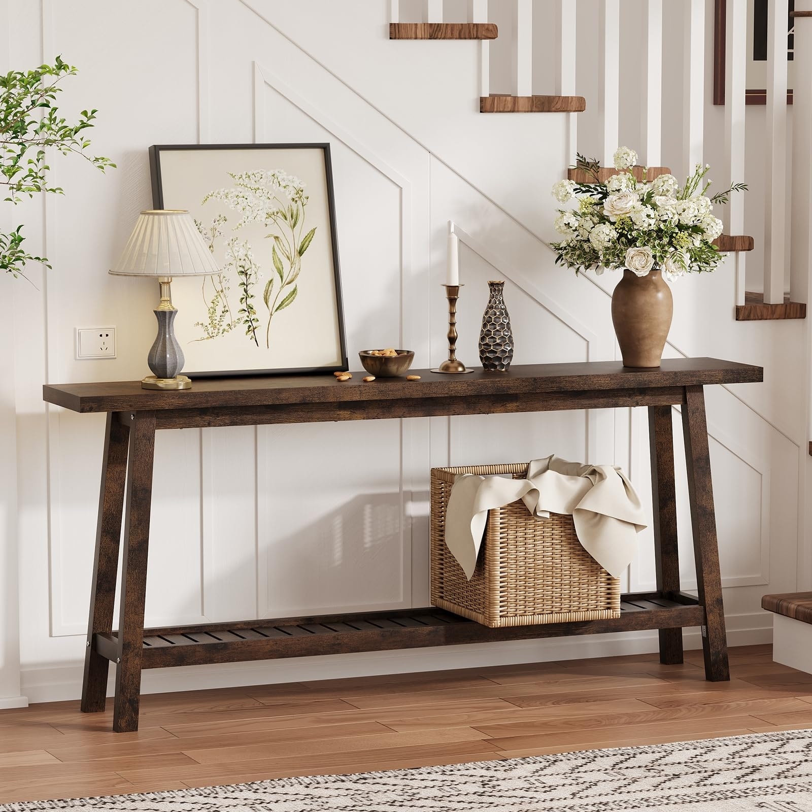 70.9" Extra Long Console Table, 2-Tier Narrow Sofa Table Behind Couch, Industrial Farmhouse Entryway Table