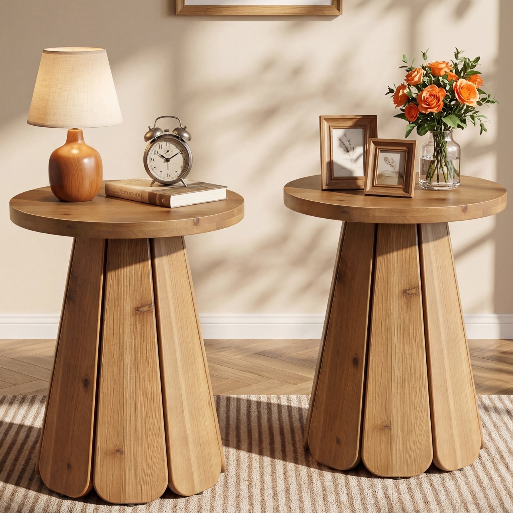 20 Inch Round Wood End Table for Living Room, Bedroom, Farmhouse Style