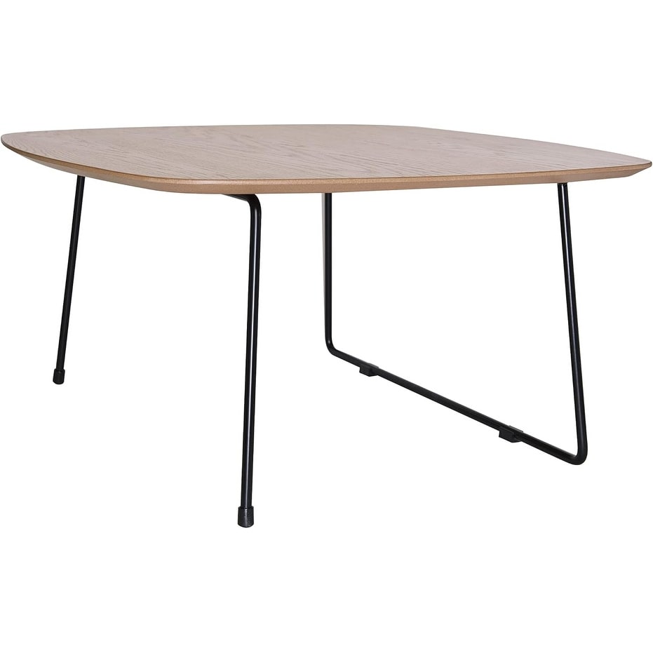 Pembroke 31" Modern Round Coffee Table with Solid Oak Wood Top, Black Powder-Coated Iron Base - Minimalist Centerpiece