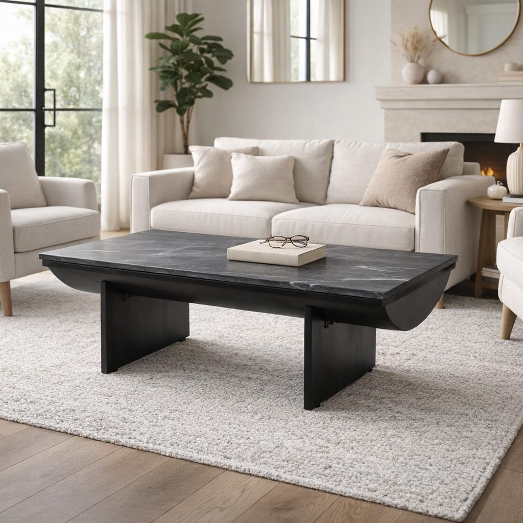 Modern Mango Wood Coffee Table with Marble Top - 46", Black & White - 46.0"