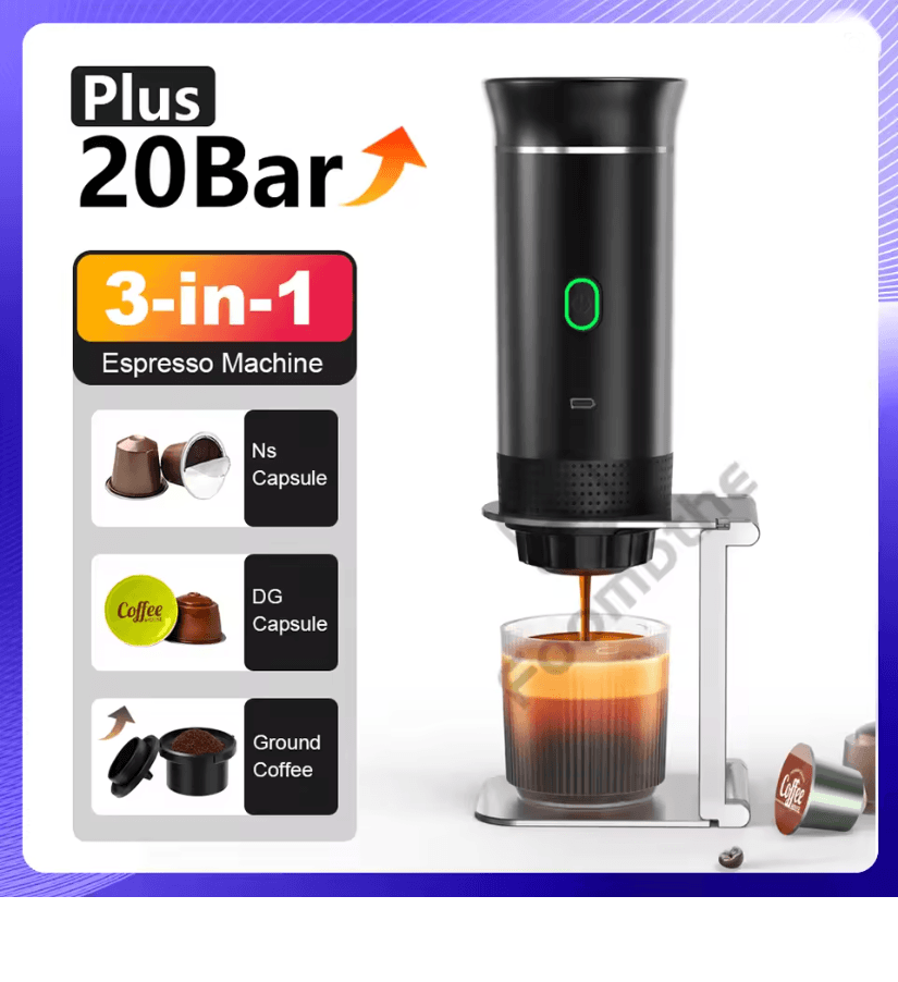 Wireless Portable Espresso Coffee Maker 3 In 1 Capsule And Ground Coffee Travel Machine black