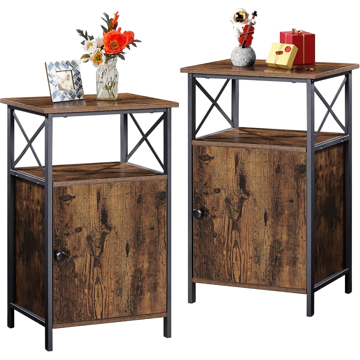 Night Stand,Square End Side Table with Drawer and Storage Space for Living Room,Bedroom (End Tables, Retro Brown/Set of 2)