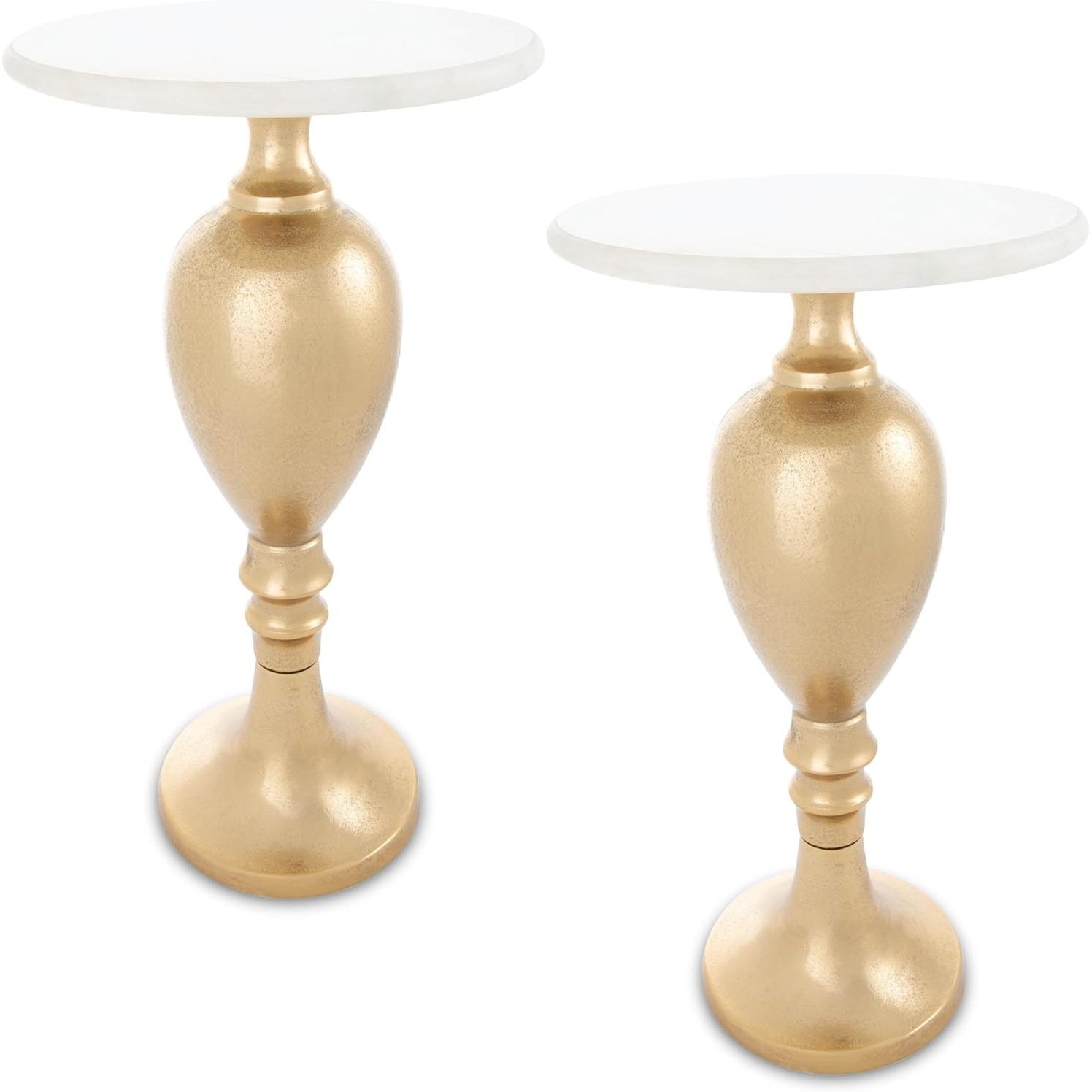 Small Round Gold End Table, 22'' Height, Vintage Metal Accent, Side Pedestal for Living Room