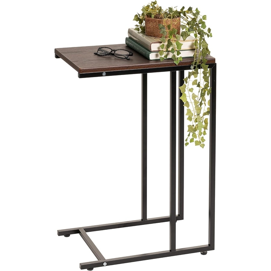 Side Table with Wood and Metal Frame, C-Shape Design for Living Room, Bedroom, or Sofa Use