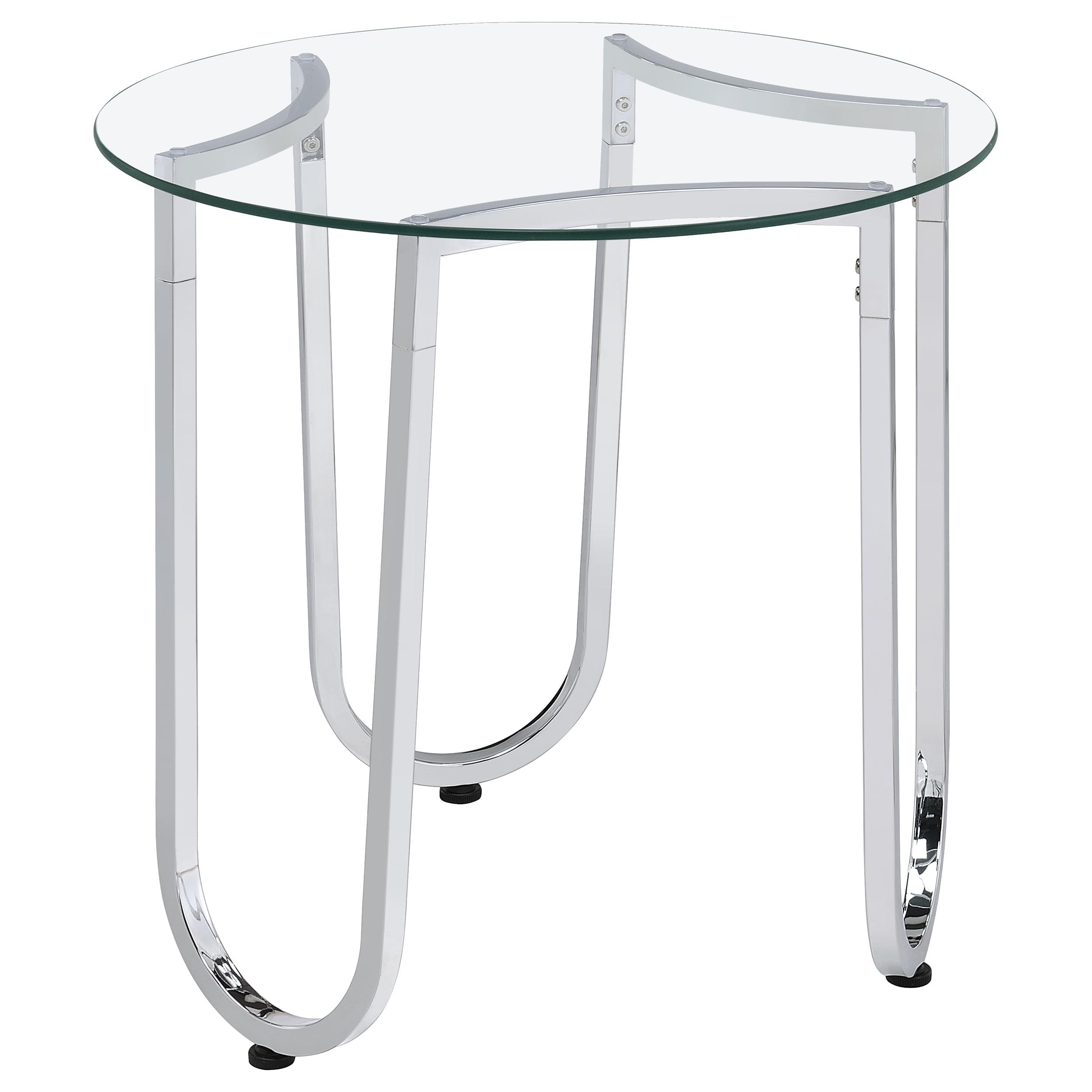 Beller Round Tempered Glass Top End Side Table Chrome