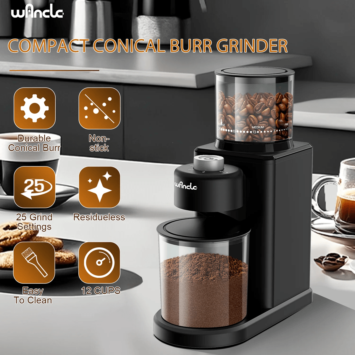 Automatic Electric Coffee Grinder Conical Burr With 25 Grind Settings And Powder Blower 110v