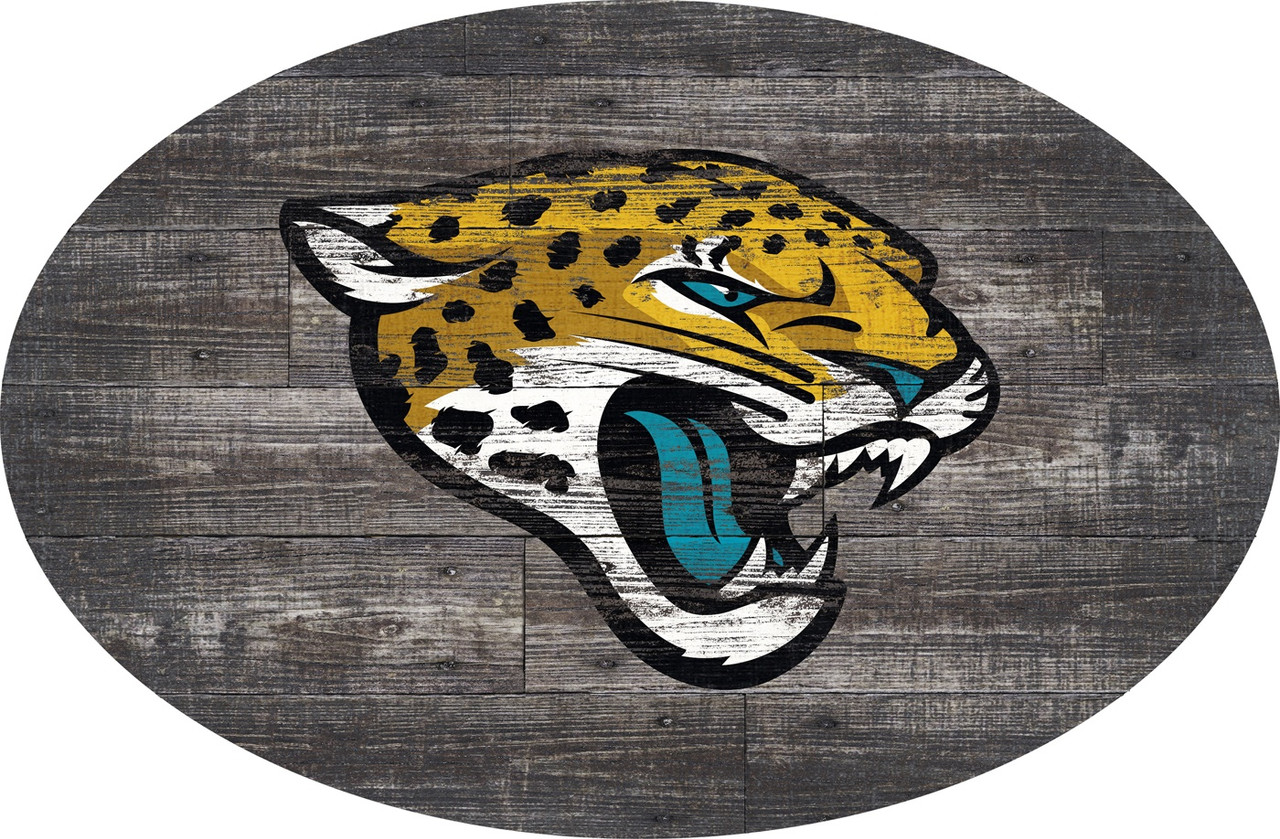Jacksonville Jaguars 46" Distressed Wood Oval Sign
