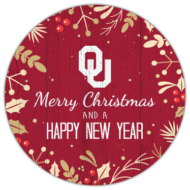 Oklahoma Sooners 12" Merry Christmas & Happy New Year Sign