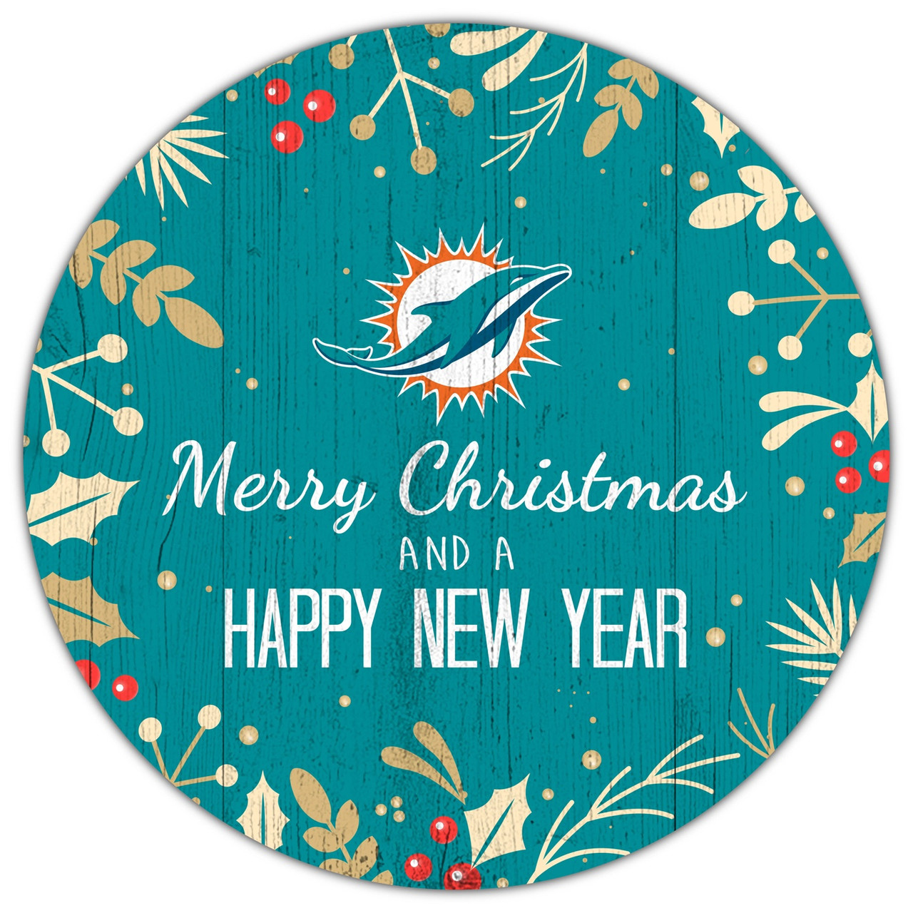 Miami Dolphins 12" Merry Christmas & Happy New Year Sign