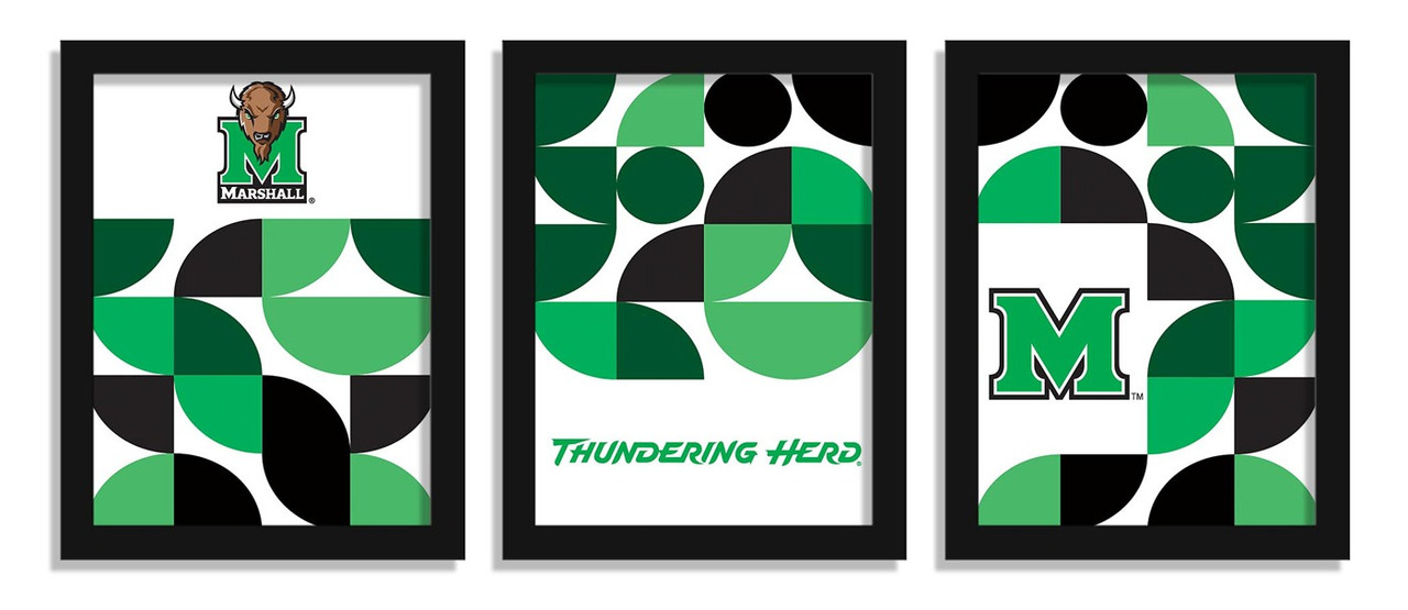 Marshall Thundering Herd Minimalist Color Pop 3-Piece Framed Print